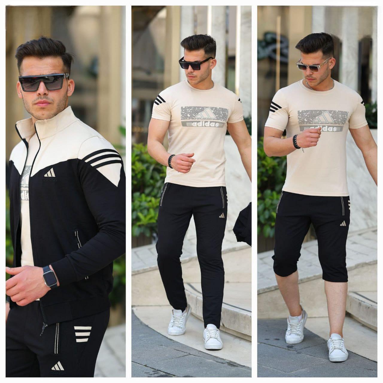 • بدلة رياضية أنيقة من أديداس. مصنوعة من مواد عالية الجودة لضمان الراحة والأناقة. مثالية للأنشطة الرياضية والارتداء اليومي، وتأتي مع تيشيرت أسود وجاكيت بيج