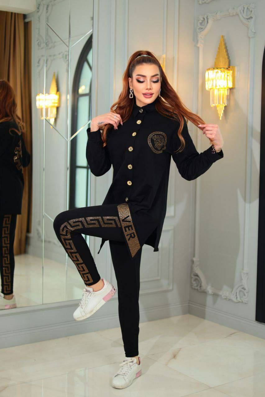 ارفع مستوى ملابسك اليومية مع هذه البدلة الرياضية السوداء الفاخرة المزينة بالتطريز. يتضمن الطقم سترة بأكمام طويلة مزينة بتطريزات ذهبية معقدة على الظهر، وبنطلون متناسق مع تفاصيل جانبية أنيقة. مثالي للاسترخاء والخروج غير الرسمي، تجمع هذه البدلة بين الراحة والأزياء الراقية. مصنوعة من قماش عالي الجودة وقابل للتنفس لضمان ملاءمة مريحة