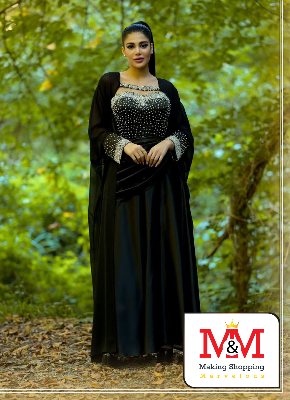 • فستان سهرة فاخر باللون الأسود مزين بتطريز لؤلؤي يضيف لمسة من الرقي والأناقة. مثالي للمناسبات الخاصة والحفلات. مصنوع من مواد عالية الجودة لضمان الراحة والمتانة