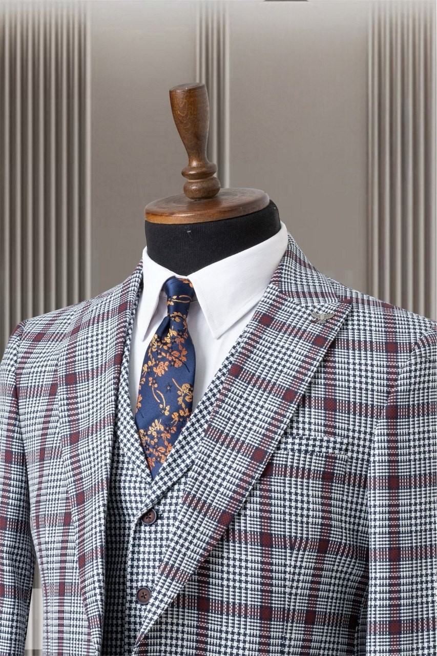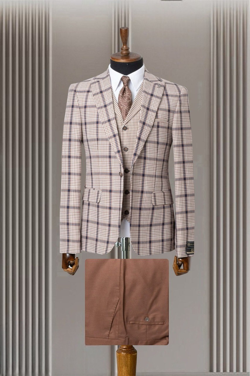 بدلة رسمية مزركشة بألوان دافئة تناسب المناسبات الرسمية والاجتماعات. مصنوعة من قماش عالي الجودة يوفر الراحة والأناقة.