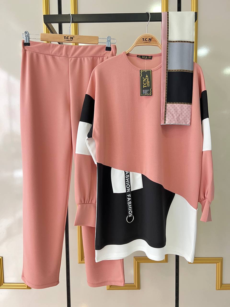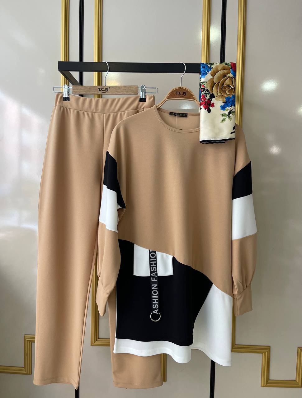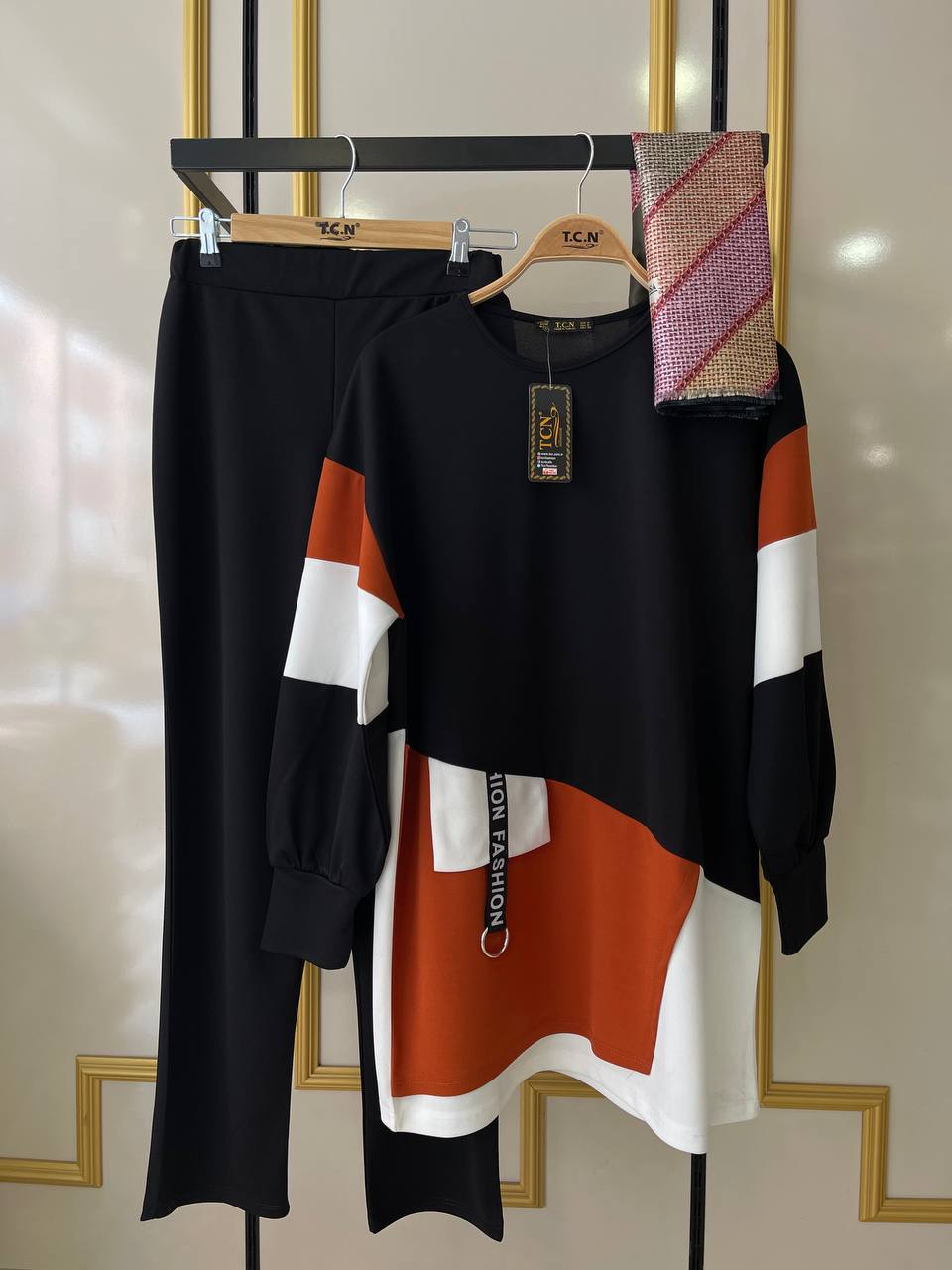بدلة رياضية عصرية تتألف من قميص وسروال، مزودة بقطع ملونة أنيقة. مصممة بأكمام طويلة وأساور مرنة، مناسبة للأنشطة الرياضية والملابس اليومية، ومصنوعة من مواد عالية الجودة لضمان الراحة والمتانة