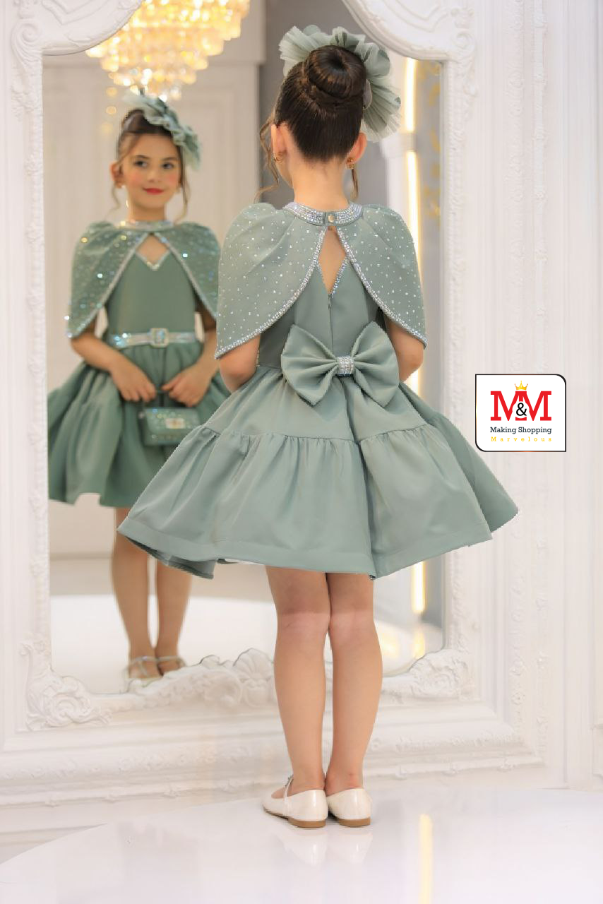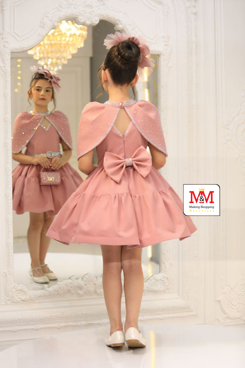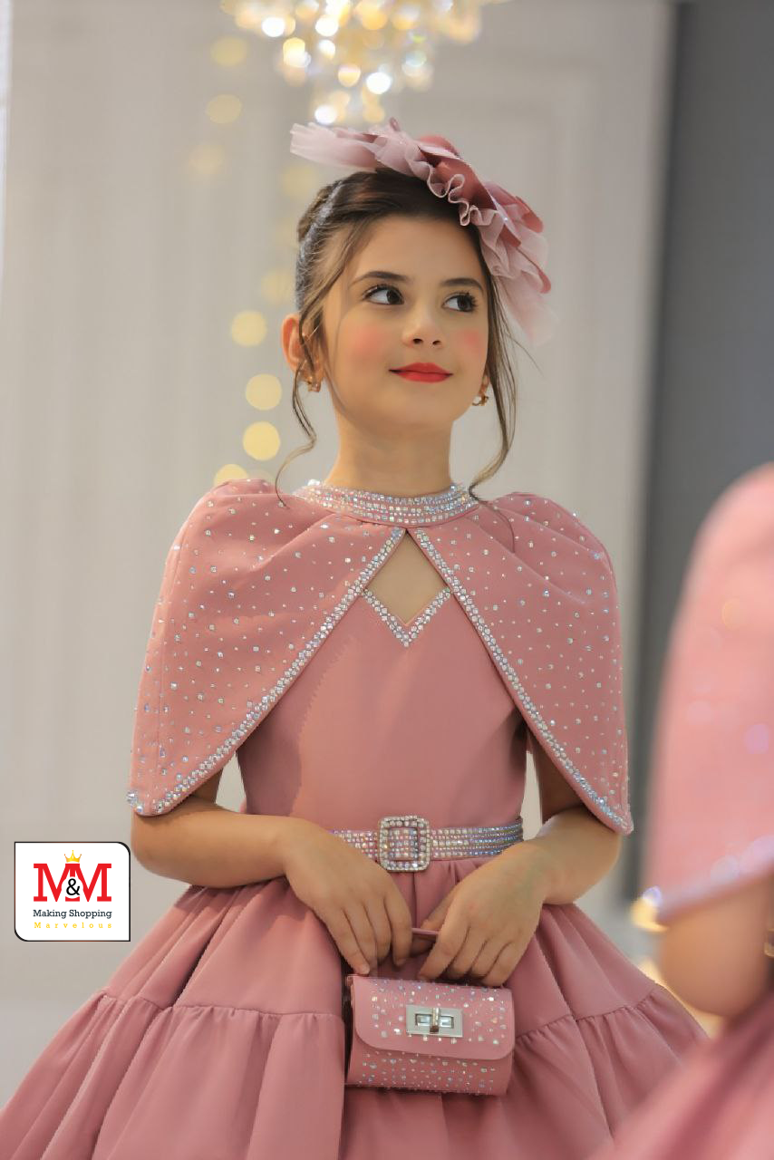 هذا الفستان الرائع باللون العنابي مثالي للفعاليات الرسمية والمناسبات الخاصة. يتميز الفستان بكاب مطرز بحجارة لامعة، وخصر محدد بحزام مرصع بالجواهر، وتنورة متدفقة لإطلالة أنيقة. مصمم من مواد عالية الجودة لضمان الراحة والأناقة لطفلك