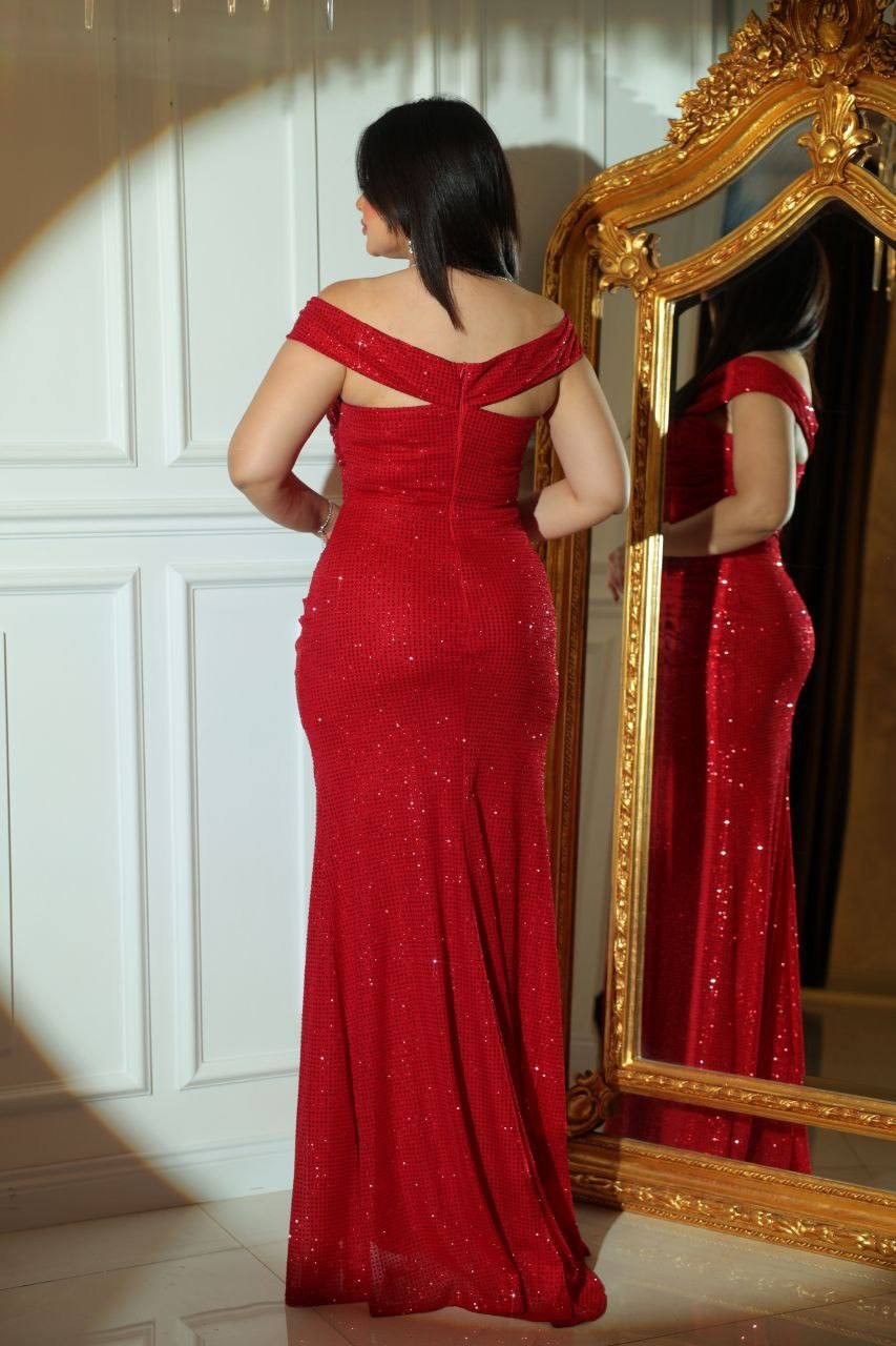 فستان سهرة أحمر رائع من "جلامور كوتور"، مصمم لترك انطباع مذهل في أي مناسبة رسمية. يتميز هذا الفستان بتصميم مكشوف الكتفين مع تفاصيل دقيقة من الترتر، مما يخلق تأثيرًا متألقًا. القصّة الأنيقة والشكل الذي يلتصق بالجسم يعززان منحنياتك الطبيعية، مما يجعله مثاليًا للحفلات الكبرى، والزفاف، والمناسبات الخاصة.