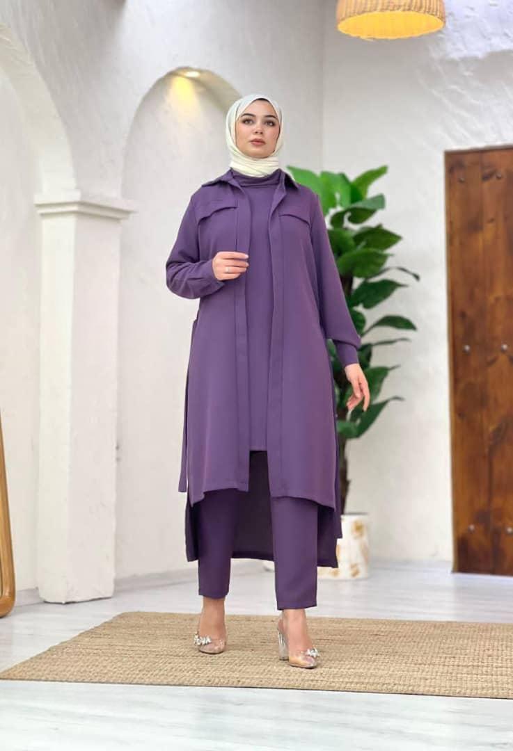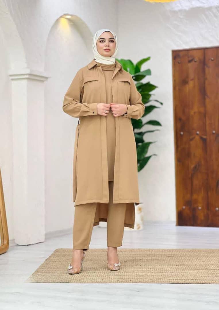 • مجموعة أنيقة من قطعتين، تتميز بتصميم طويل مع حزام خصر لإبراز الشكل وإبراز المظهر الأنيق. مثالي للمناسبات الرسمية وغير الرسمية، مصنوعة من نسيج عالي الجودة يضمن الراحة والأناقة.