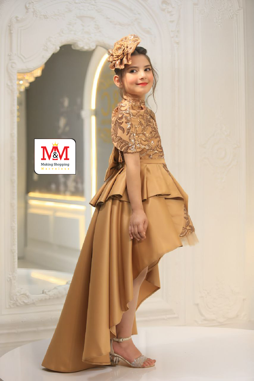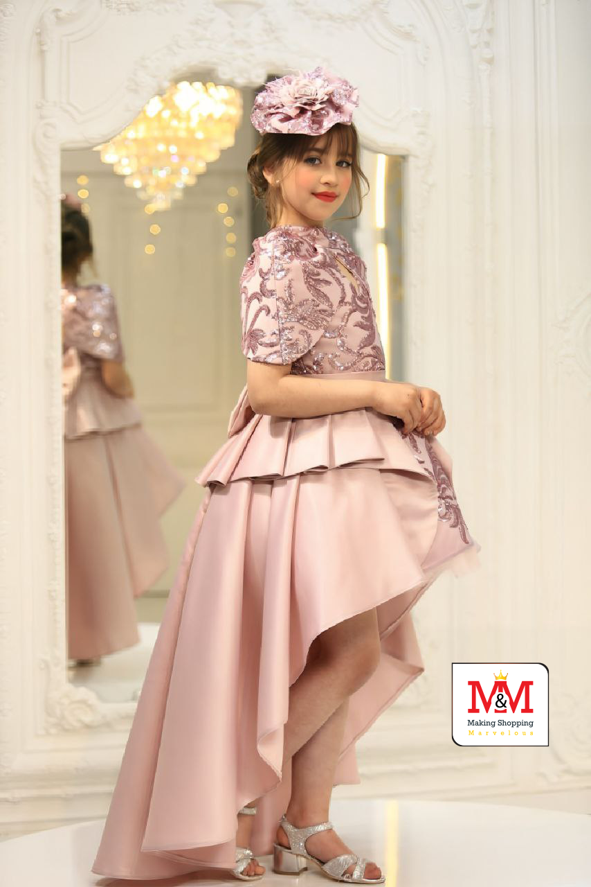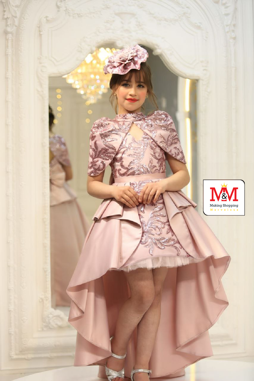 هذا الفستان الأنيق بتصميم عالي-منخفض مثالي للفعاليات الرسمية والمناسبات الخاصة. يتميز الفستان بصدر مزخرف بتطريز جميل، وتنورة أنيقة بتصميم عالي-منخفض، وقبعة متطابقة لإضافة لمسة من الأناقة. مصمم من مواد فاخرة لضمان الراحة والمظهر الرائع لطفلك.
