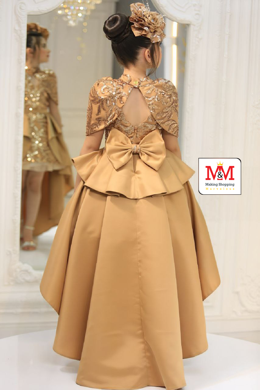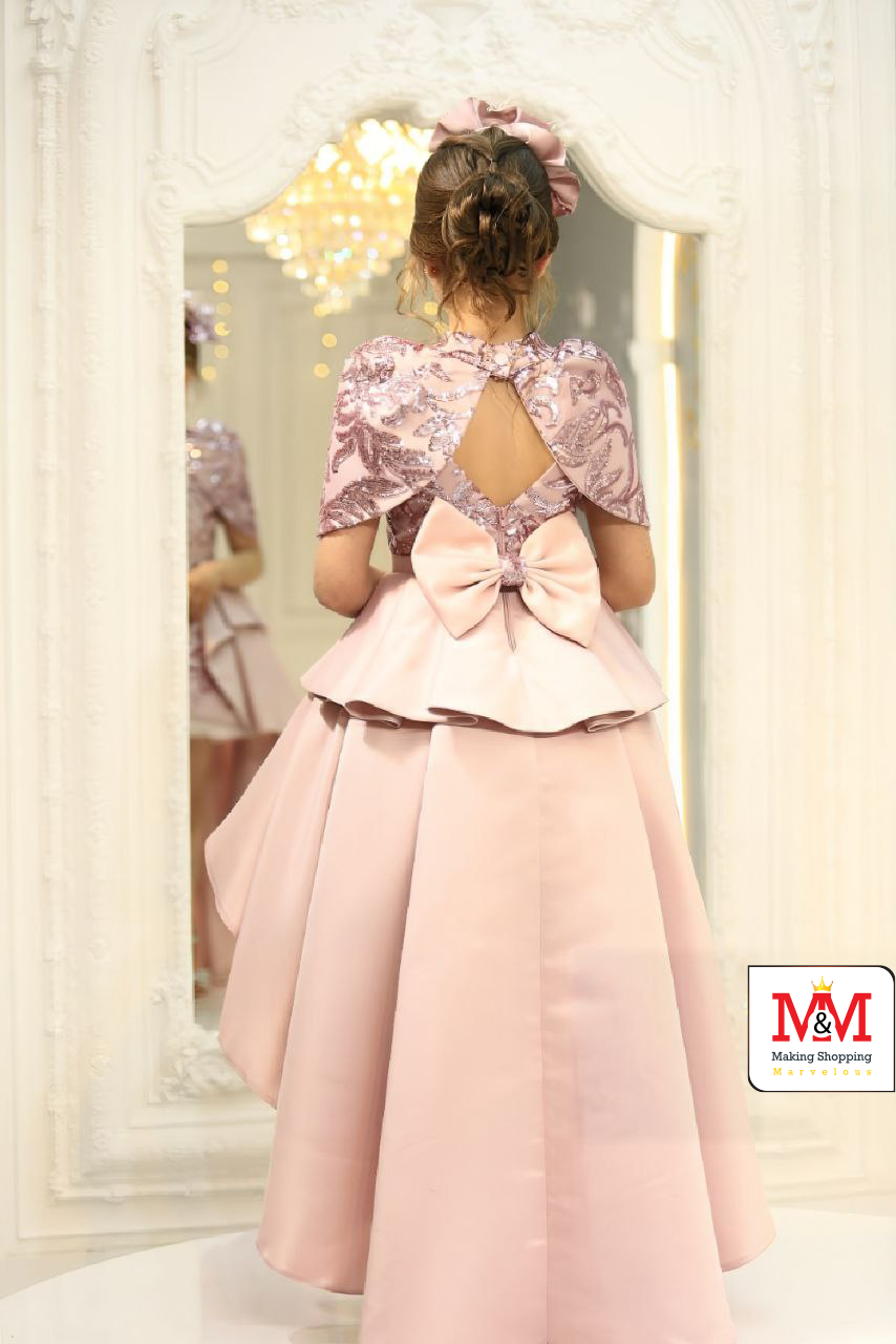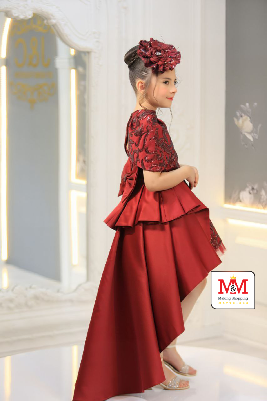 هذا الفستان الأنيق بتصميم عالي-منخفض مثالي للفعاليات الرسمية والمناسبات الخاصة. يتميز الفستان بصدر مزخرف بتطريز جميل، وتنورة أنيقة بتصميم عالي-منخفض، وقبعة متطابقة لإضافة لمسة من الأناقة. مصمم من مواد فاخرة لضمان الراحة والمظهر الرائع لطفلك.