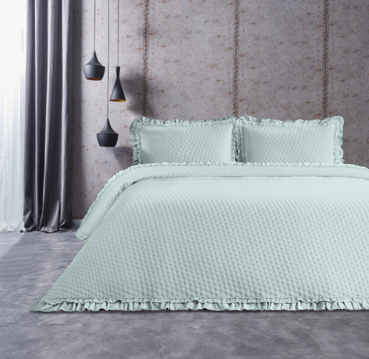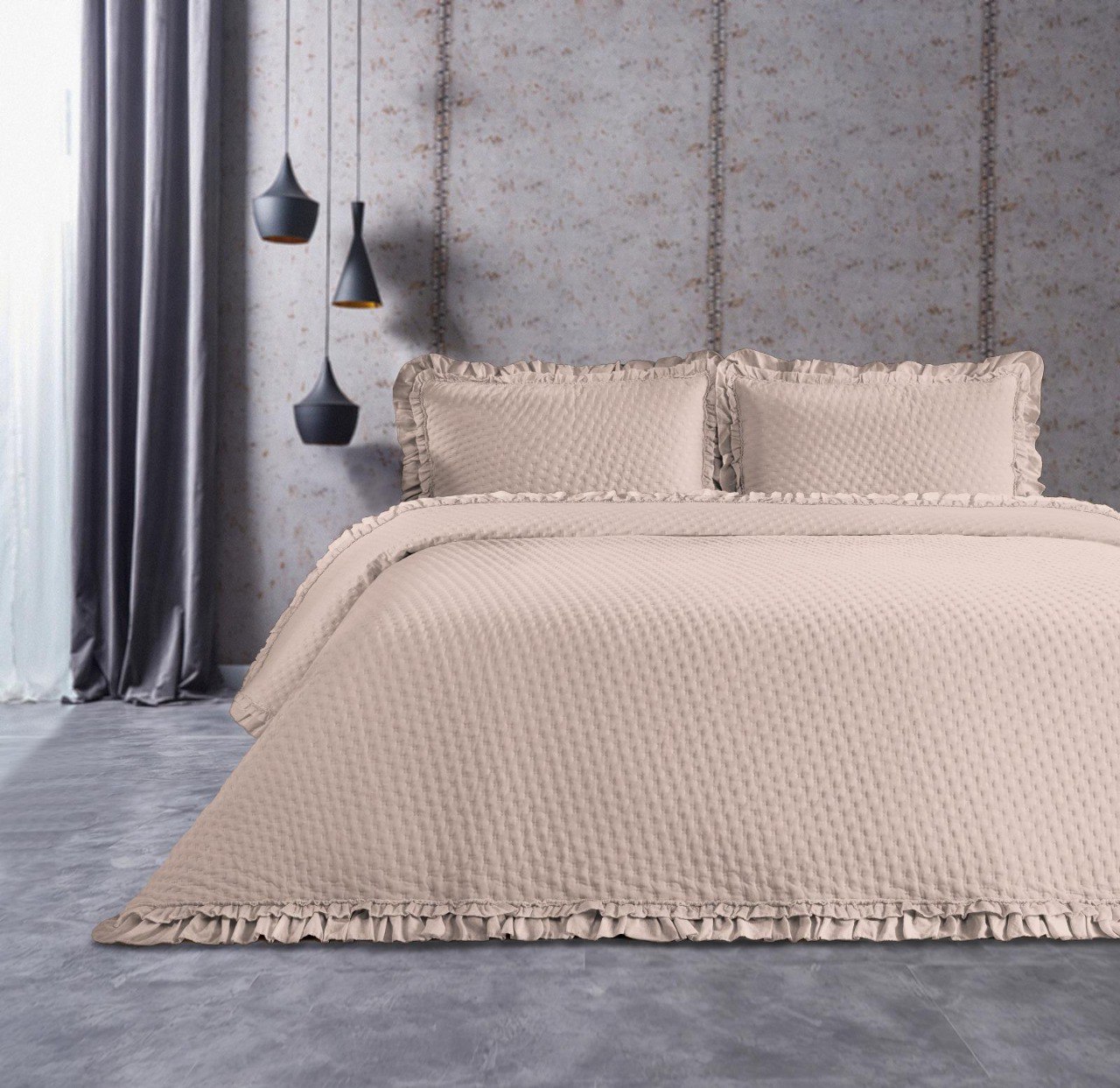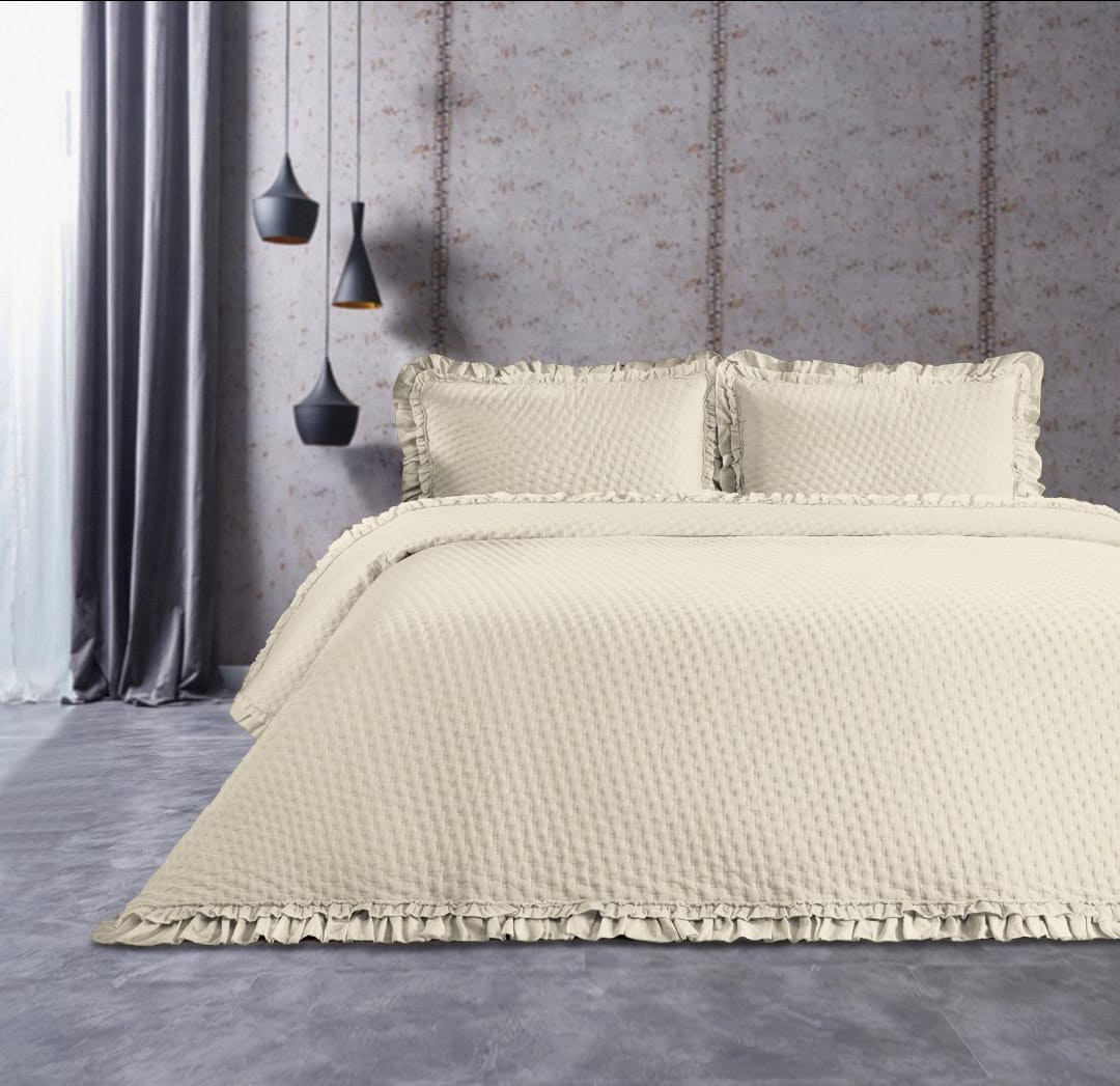 طقم المفروشات الأنيق مع التفاصيل المضفورة يضفي لمسة من الأناقة والراحة إلى غرفة نومك. يتضمن الطقم لحافًا، مفرش سرير، وأغطية وسائد متناسقة، جميعها مصنوعة من مواد عالية الجودة مع تصميم حافة مضفورة ناعمة. متوفر بلون رمادي مهدئ يناسب أي ديكور.