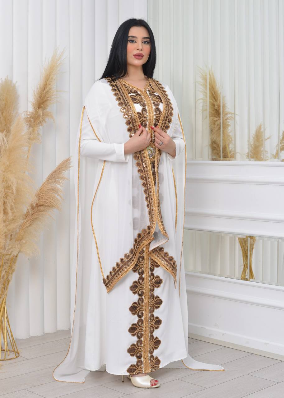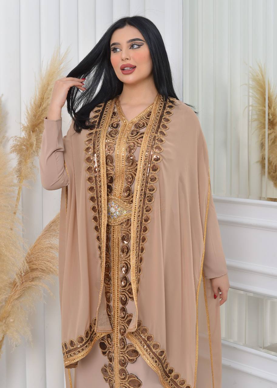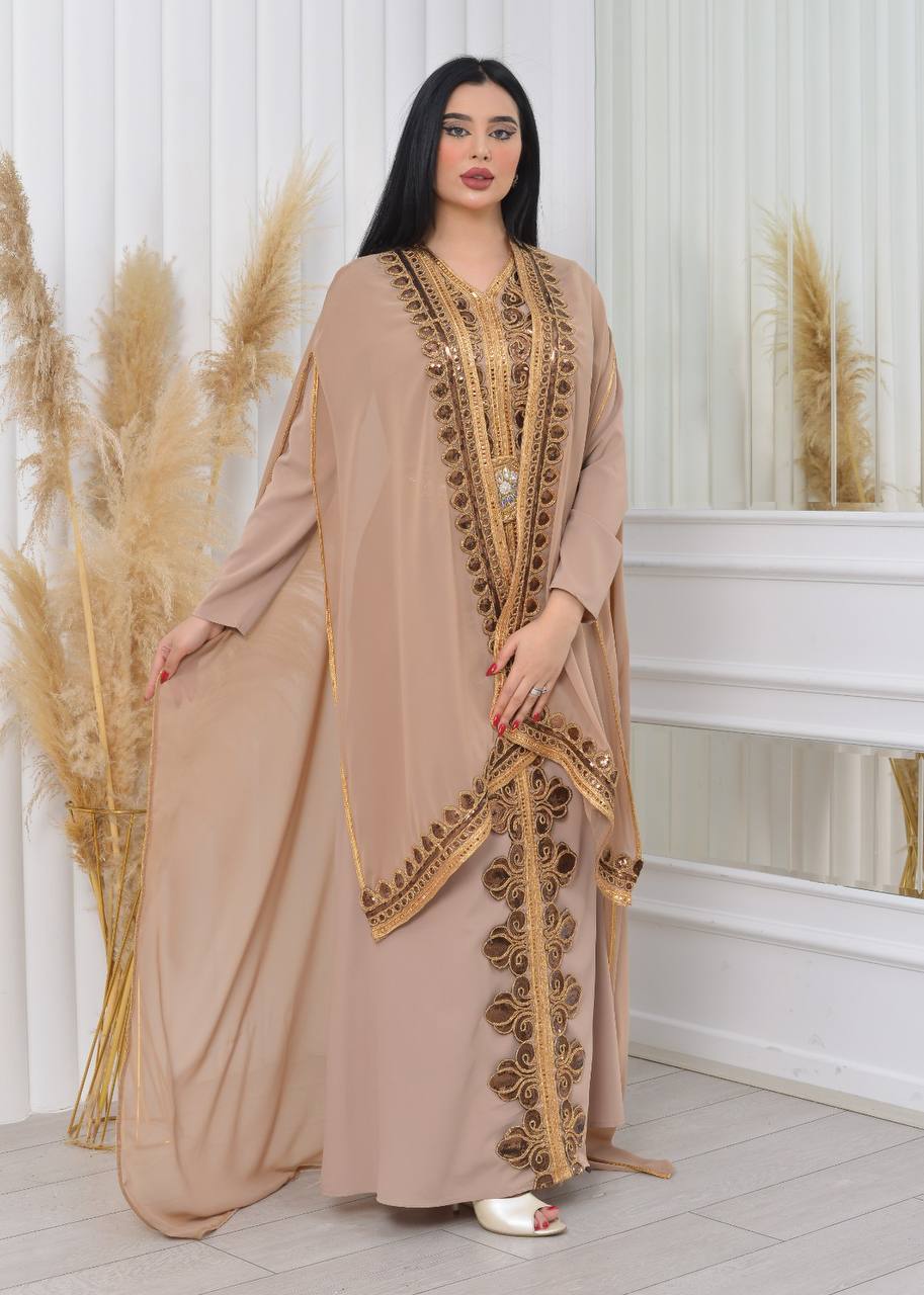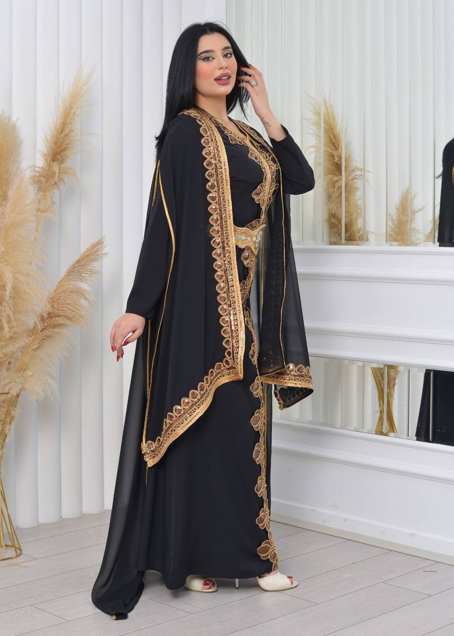 عباية مغربية أنيقة مزخرفة بالذهب، مصممة بجودة عالية واهتمام بالتفاصيل لتمنحك مظهرًا فريدًا وفاخرًا. مصنوعة من مواد ناعمة ومريحة تناسب الاستخدام اليومي أو المناسبات الخاصة.