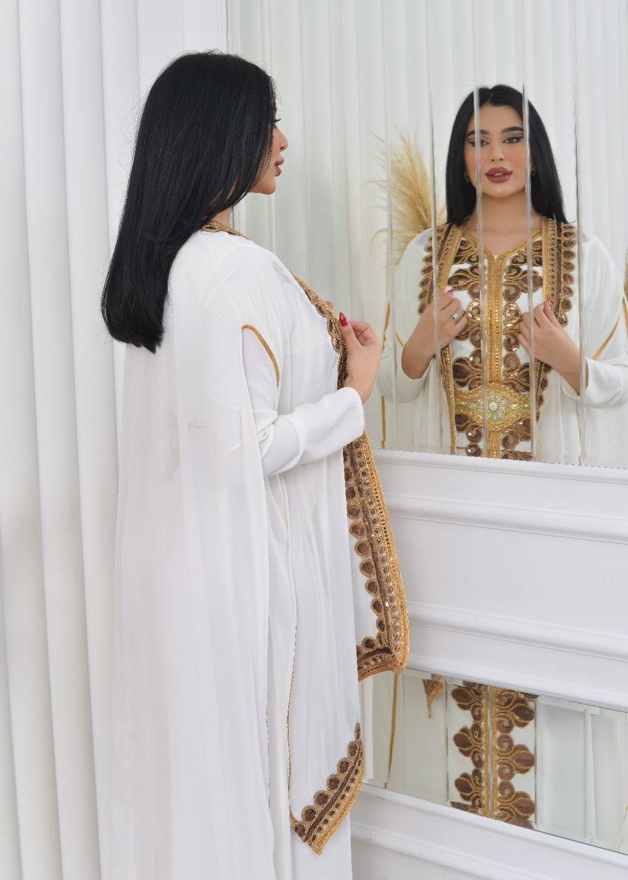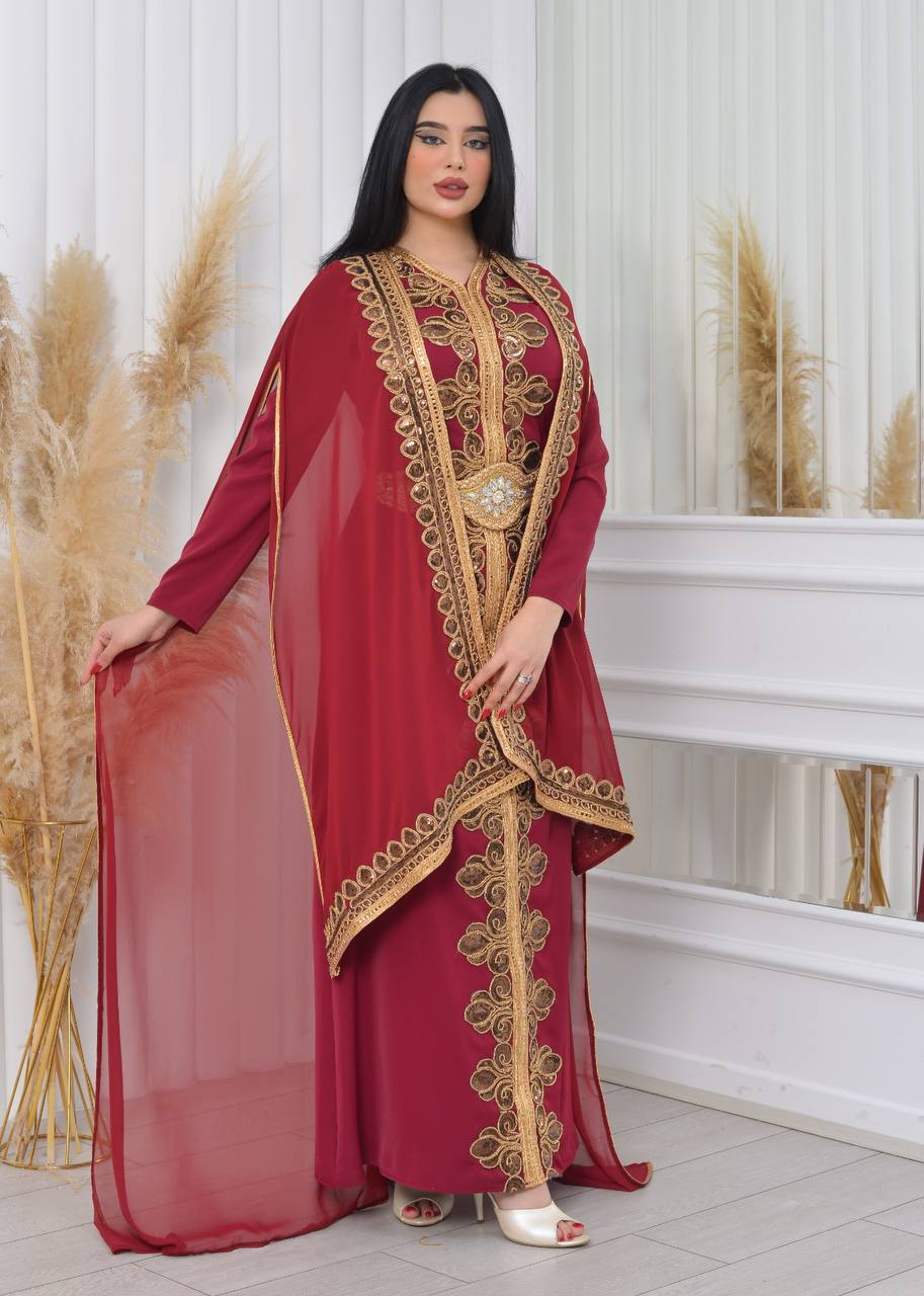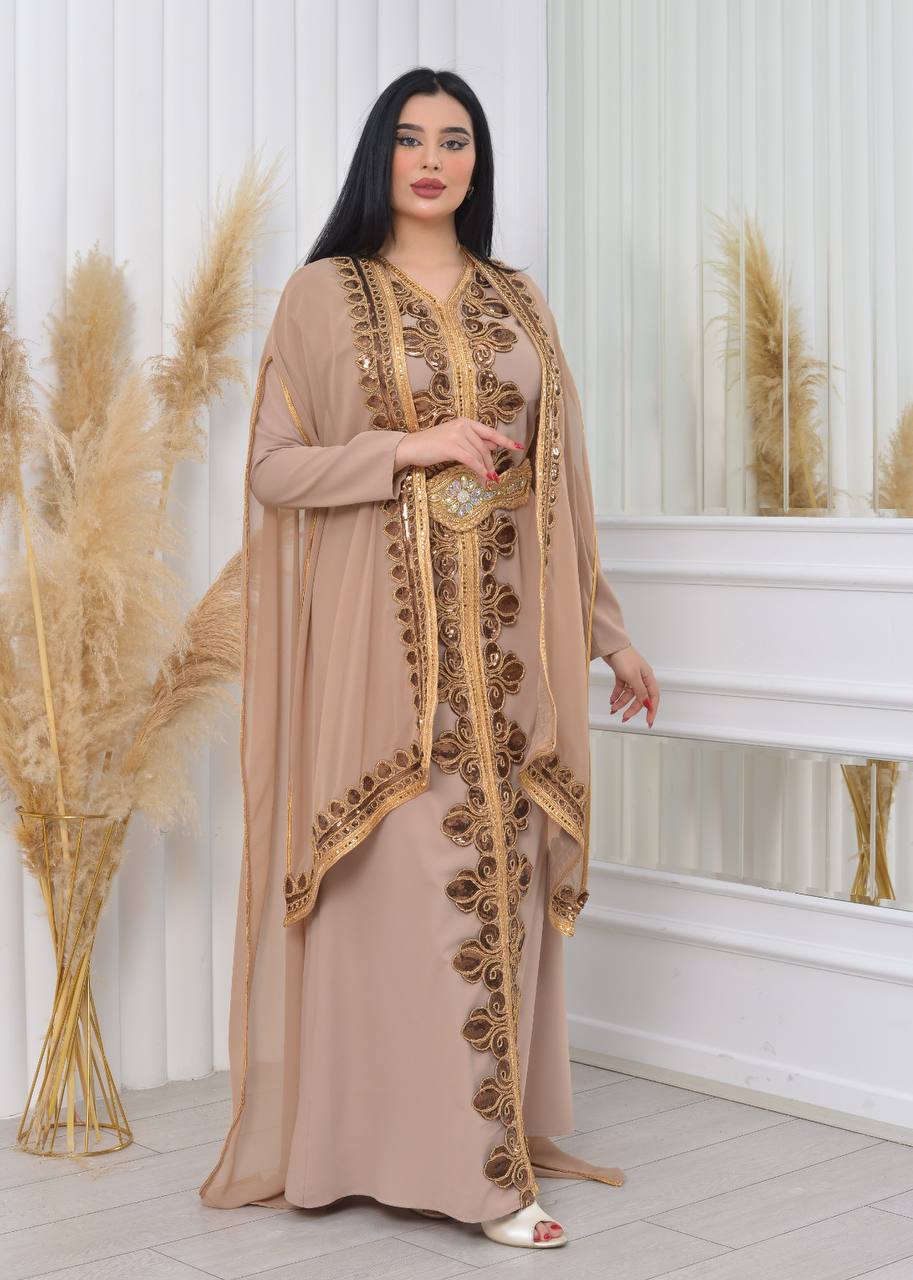 عباية مغربية أنيقة مزخرفة بالذهب، مصممة بجودة عالية واهتمام بالتفاصيل لتمنحك مظهرًا فريدًا وفاخرًا. مصنوعة من مواد ناعمة ومريحة تناسب الاستخدام اليومي أو المناسبات الخاصة.