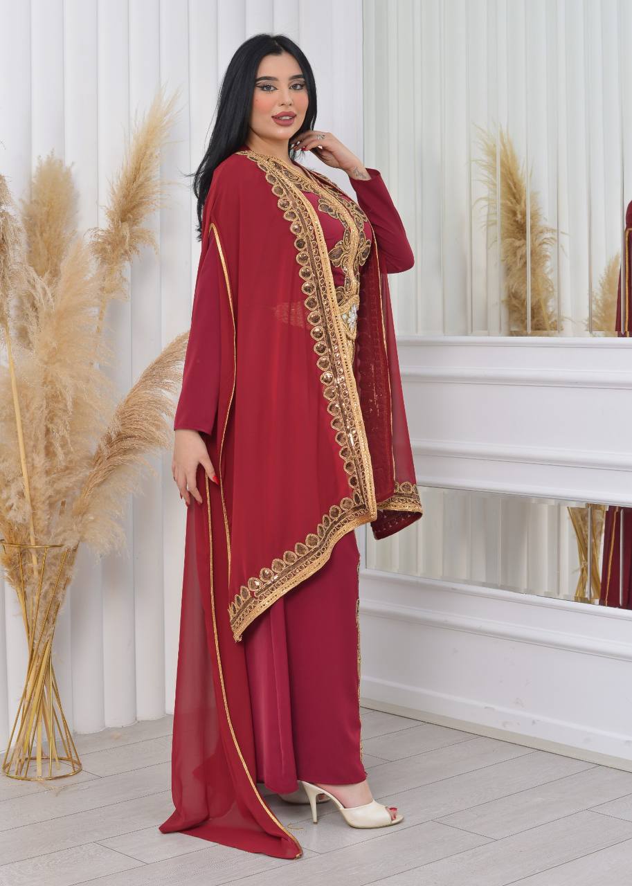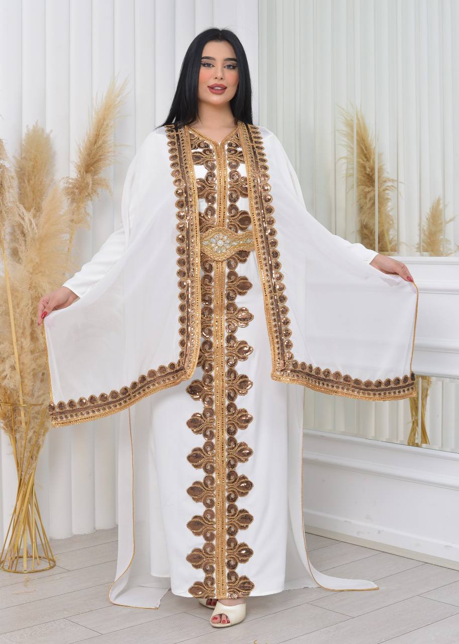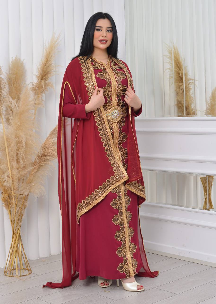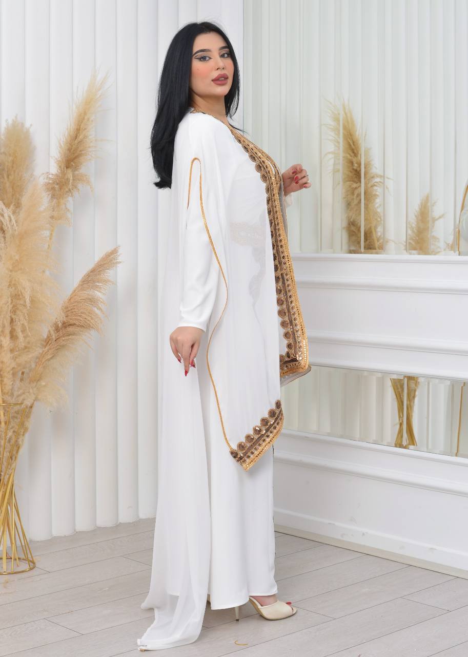 عباية مغربية أنيقة مزخرفة بالذهب، مصممة بجودة عالية واهتمام بالتفاصيل لتمنحك مظهرًا فريدًا وفاخرًا. مصنوعة من مواد ناعمة ومريحة تناسب الاستخدام اليومي أو المناسبات الخاصة.