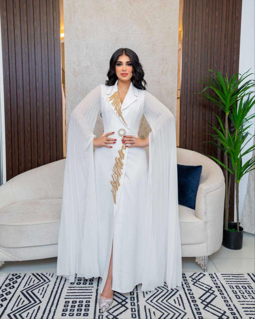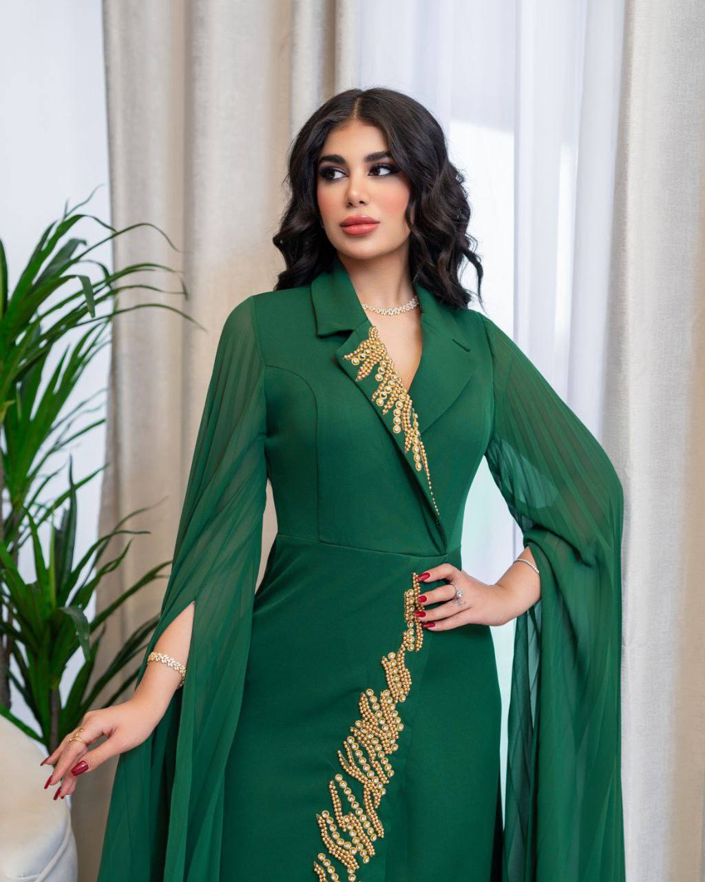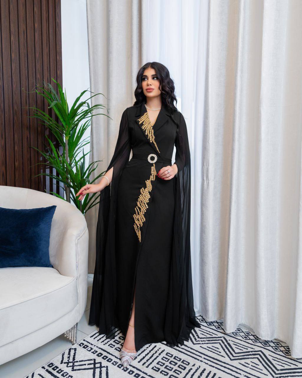 • فستان سهرة فاخر مزين بتطريز ذهبي يضيف لمسة من الفخامة والأناقة. مثالي للمناسبات الخاصة والحفلات. مصنوع من مواد عالية الجودة لضمان الراحة والمتانة