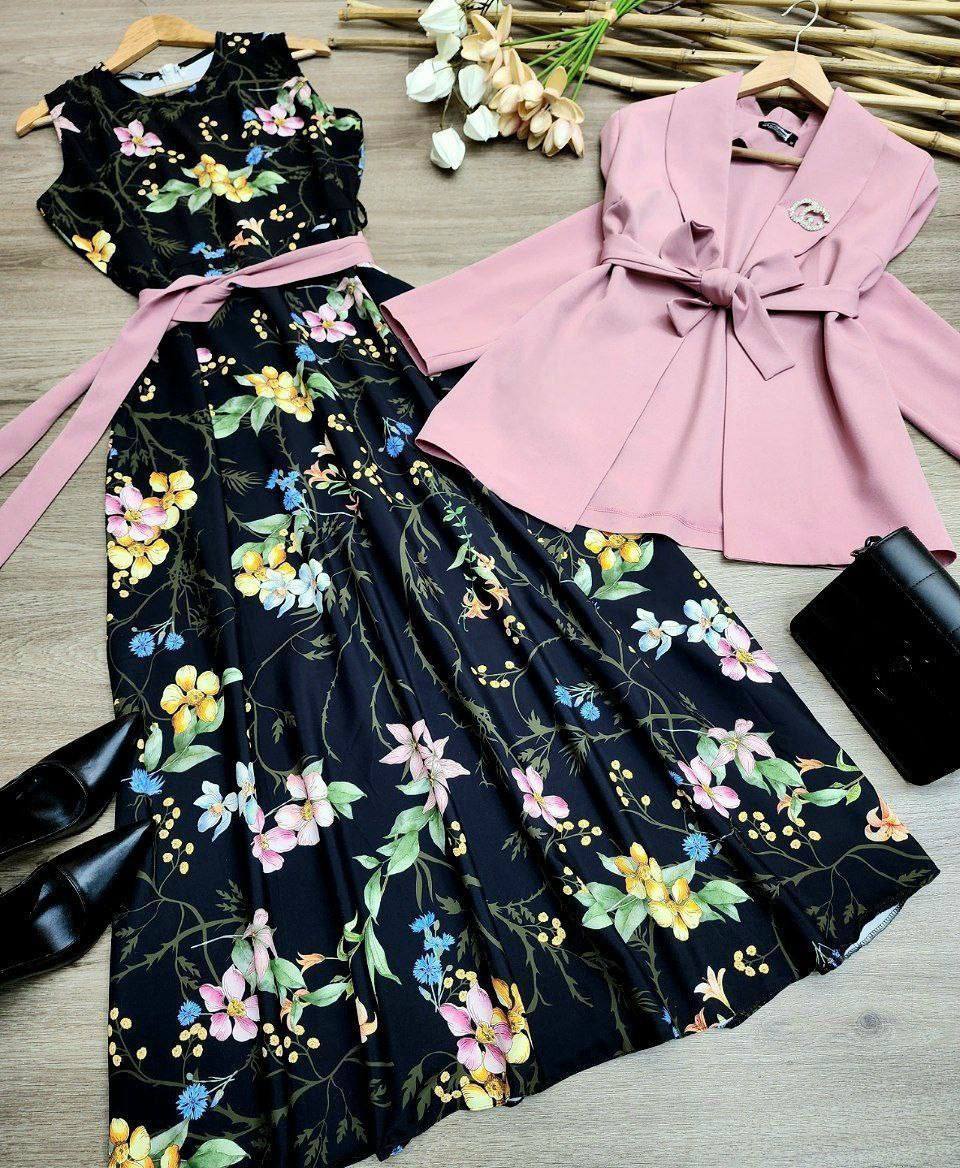 • طقم أنيق يتضمن فستانًا مزخرفًا بالأزهار وبلايزر أسود. يعرض الفستان نمطًا زهريًا جميلًا على خلفية بيضاء، بينما يضيف البلايزر الأسود لمسة من الأناقة ويمكن ارتداؤه بشكل منفصل. مثالي للمناسبات الرسمية والحفلات أو أي مناسبة أنيقة. مصنوع من مواد عالية الجودة لضمان الراحة والمتان
