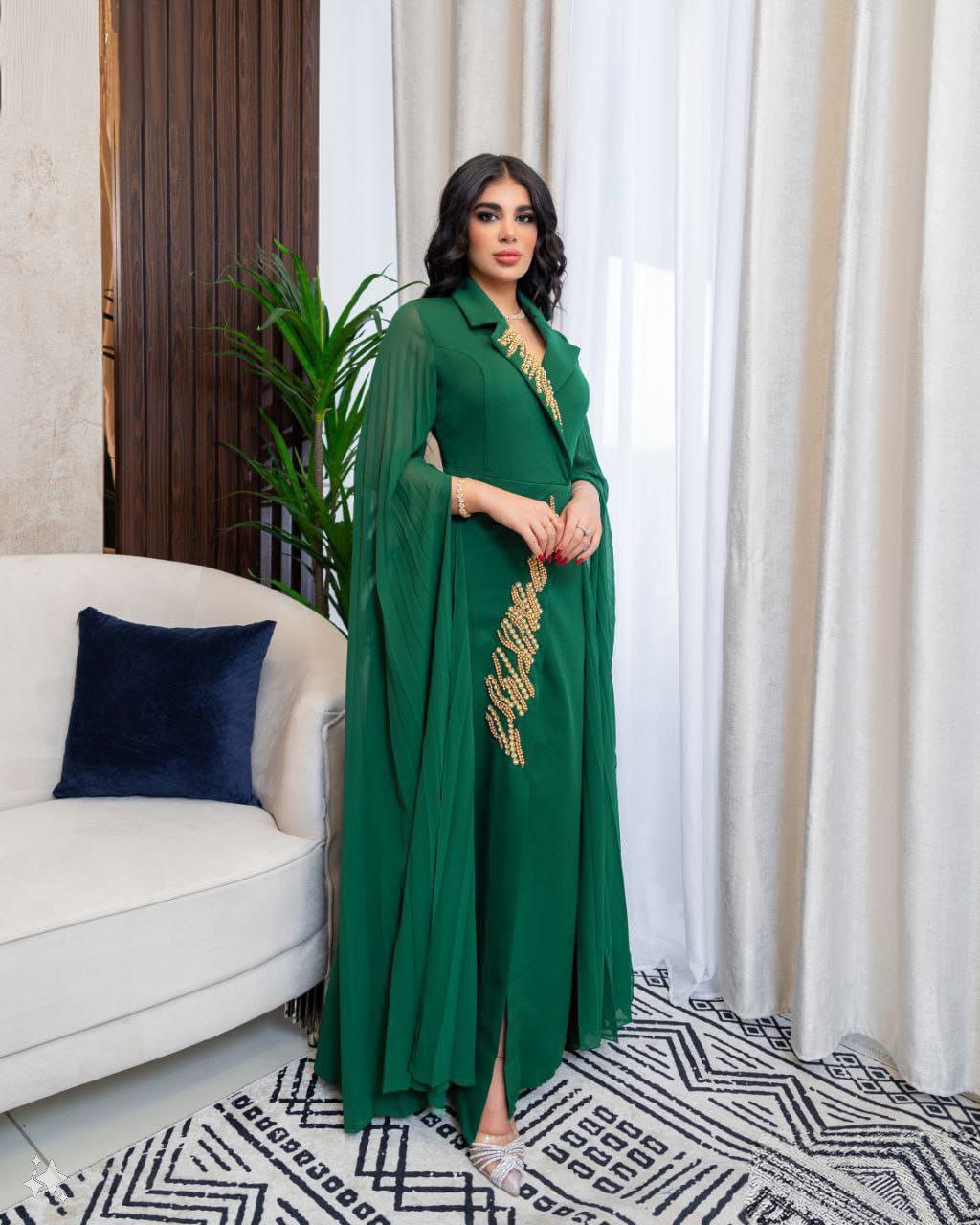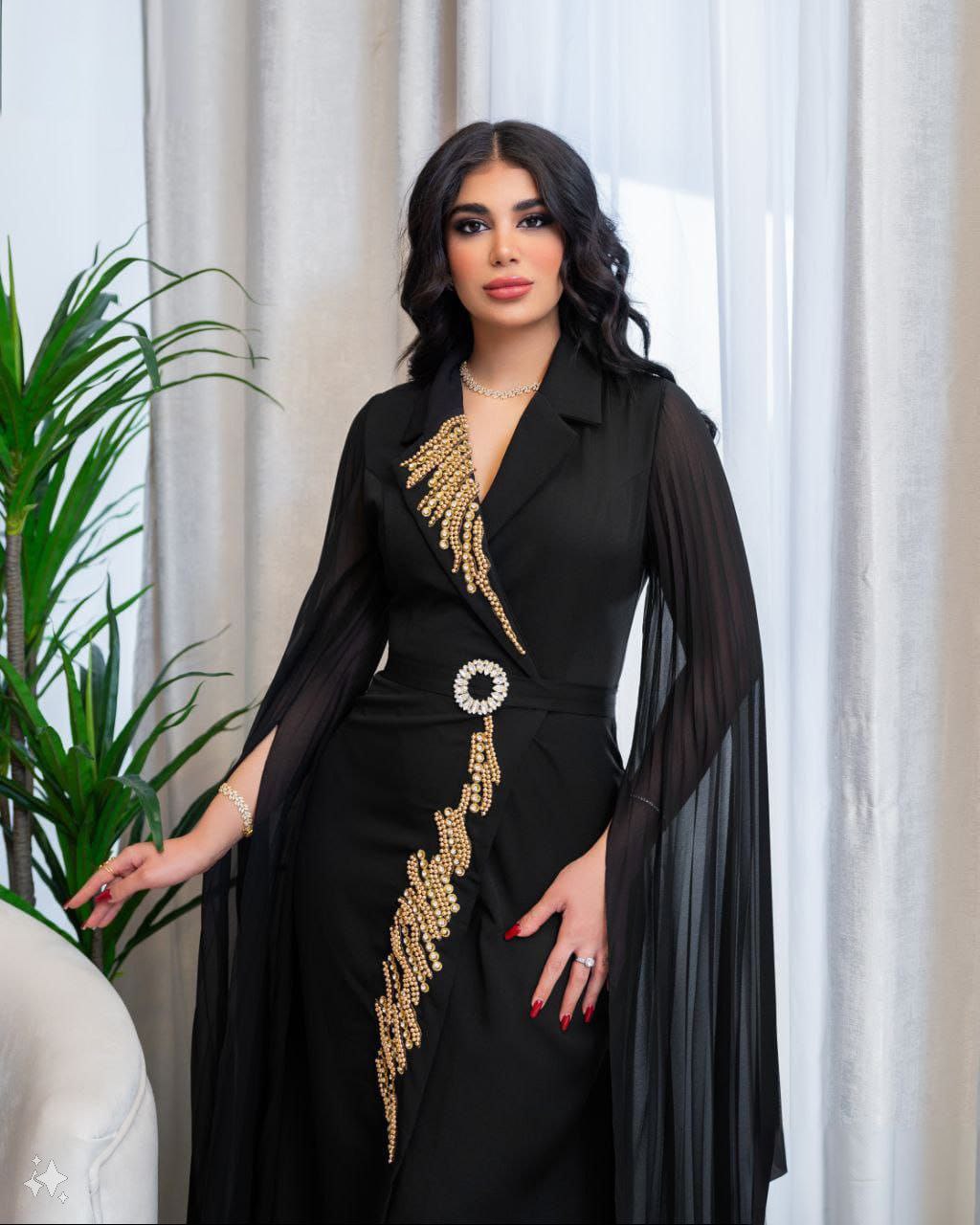 فستان سهرة رائع مزين بتفاصيل ذهبية، مثالي للأحداث الفاخرة والمناسبات الخاصة. يتميز الفستان بقصة ضيقة تتناسب مع الجسم، وأكمام شفافة ومتناثرة، بالإضافة إلى تطريزات ذهبية دقيقة، مما يوفر مظهراً ملكياً وأنيقاً يضمن لك التألق والتميز.