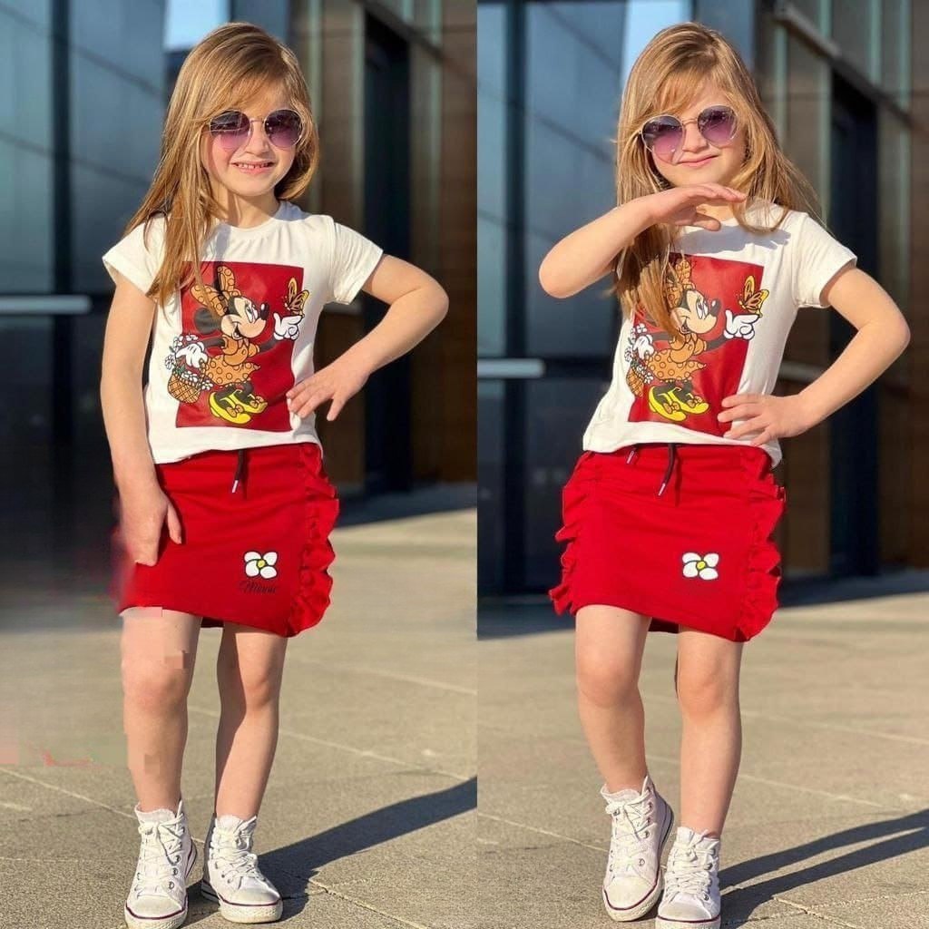 فستان أطفال أنيق ومريح مصنوع من قماش عالي الجودة يتميز بشخصية ميكي ماوس المحبوبة. مثالي للنزهات والنزهات اليومية.