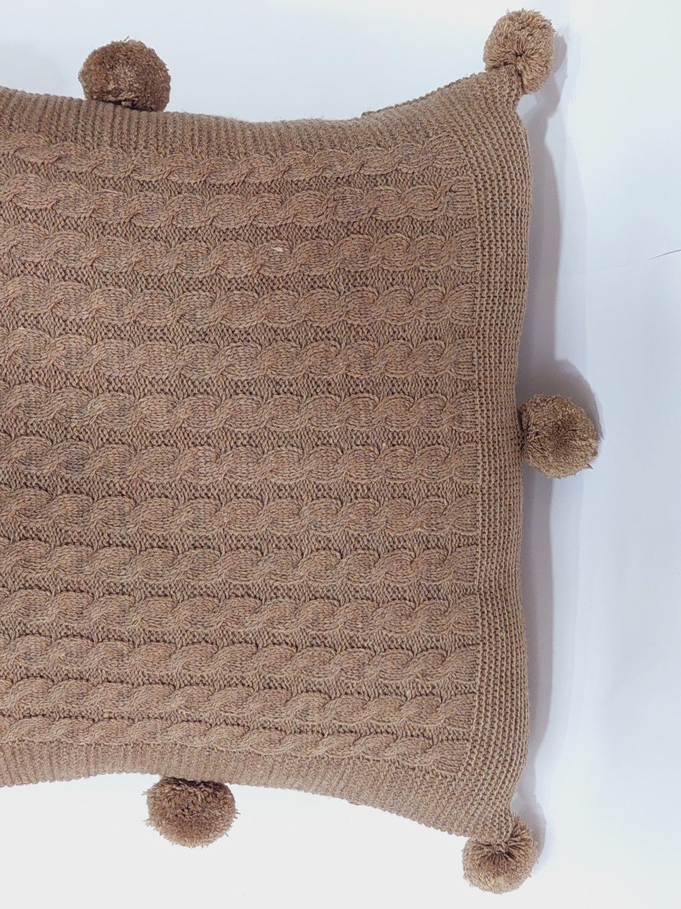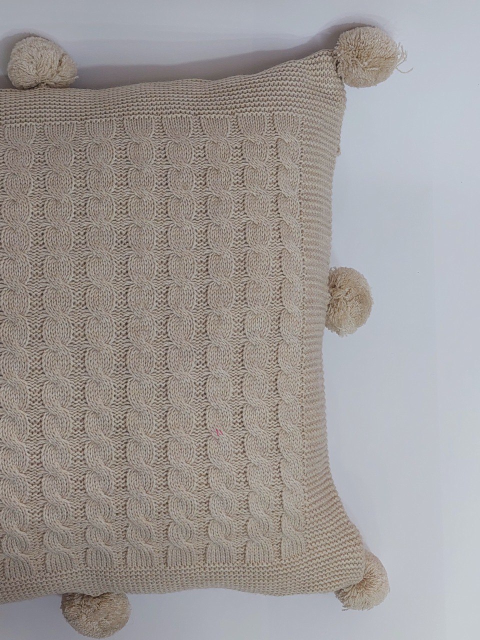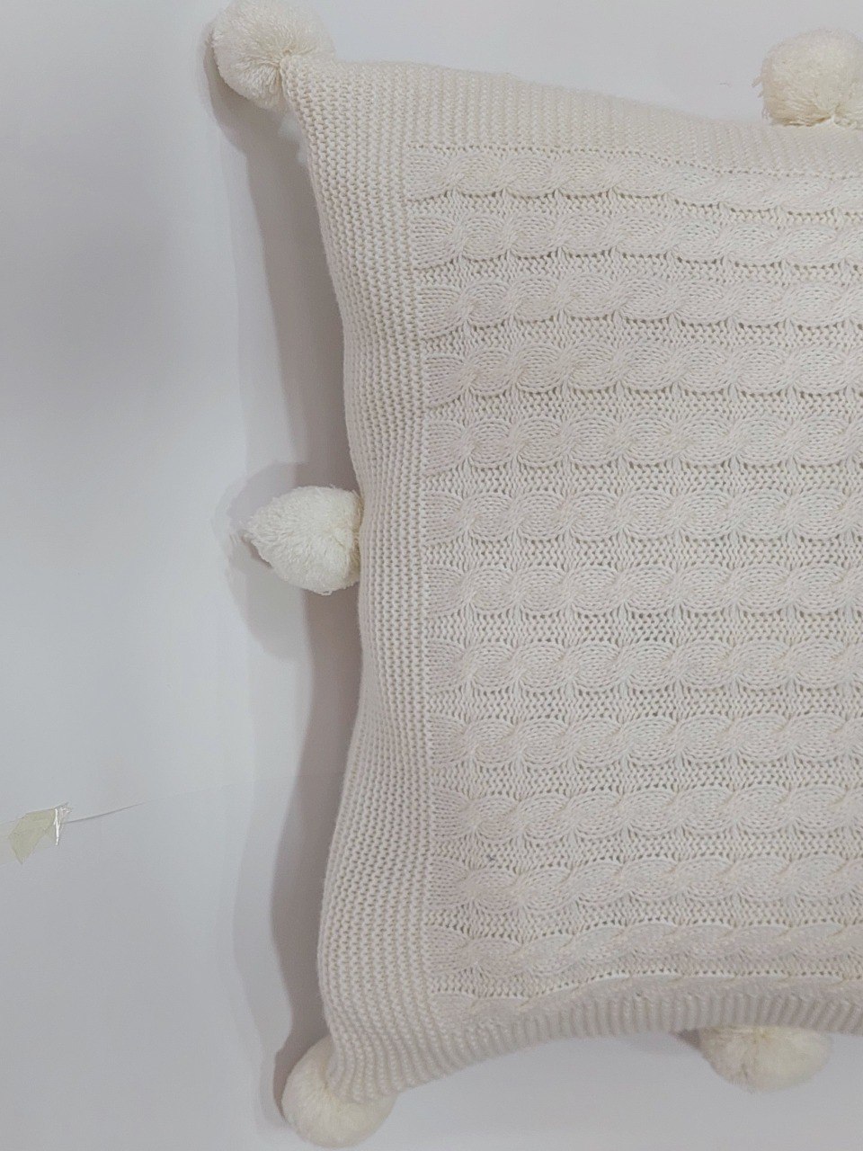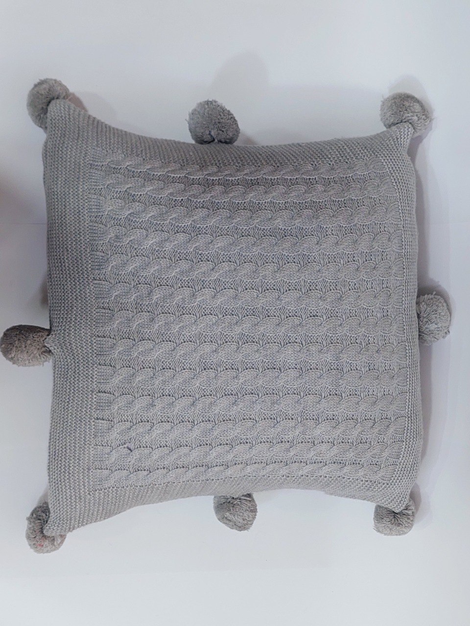 وسادة محبوكة عالية الجودة بتصميم كابل وأربع كرات pompoms في الزوايا، تضيف لمسة عصرية وراحة إلى أي غرفة.