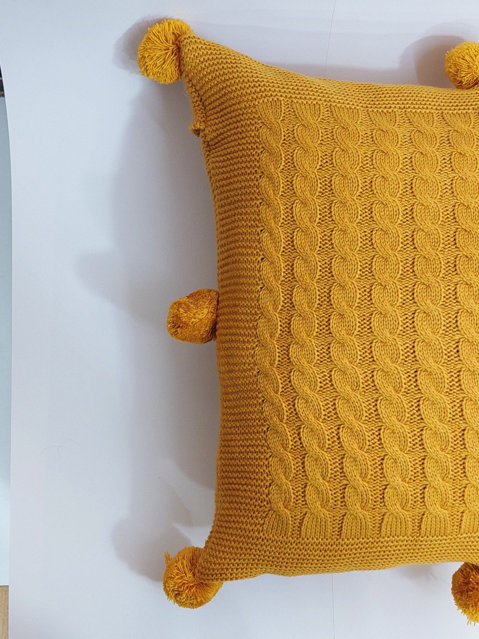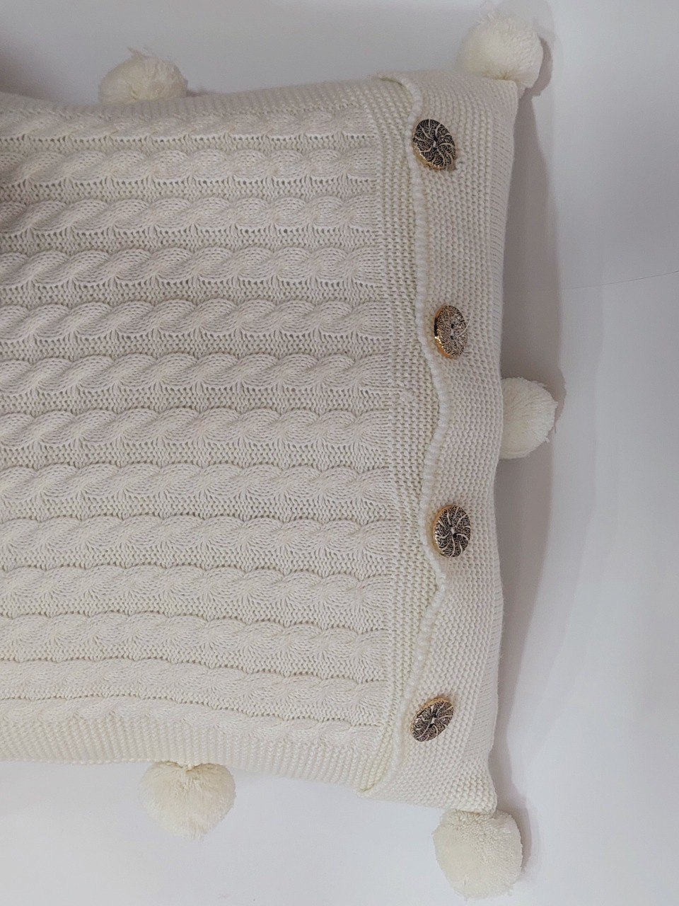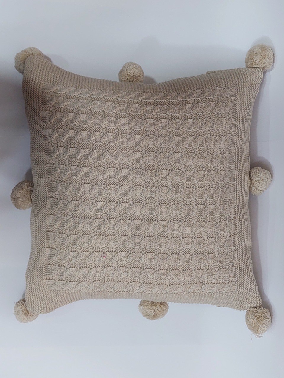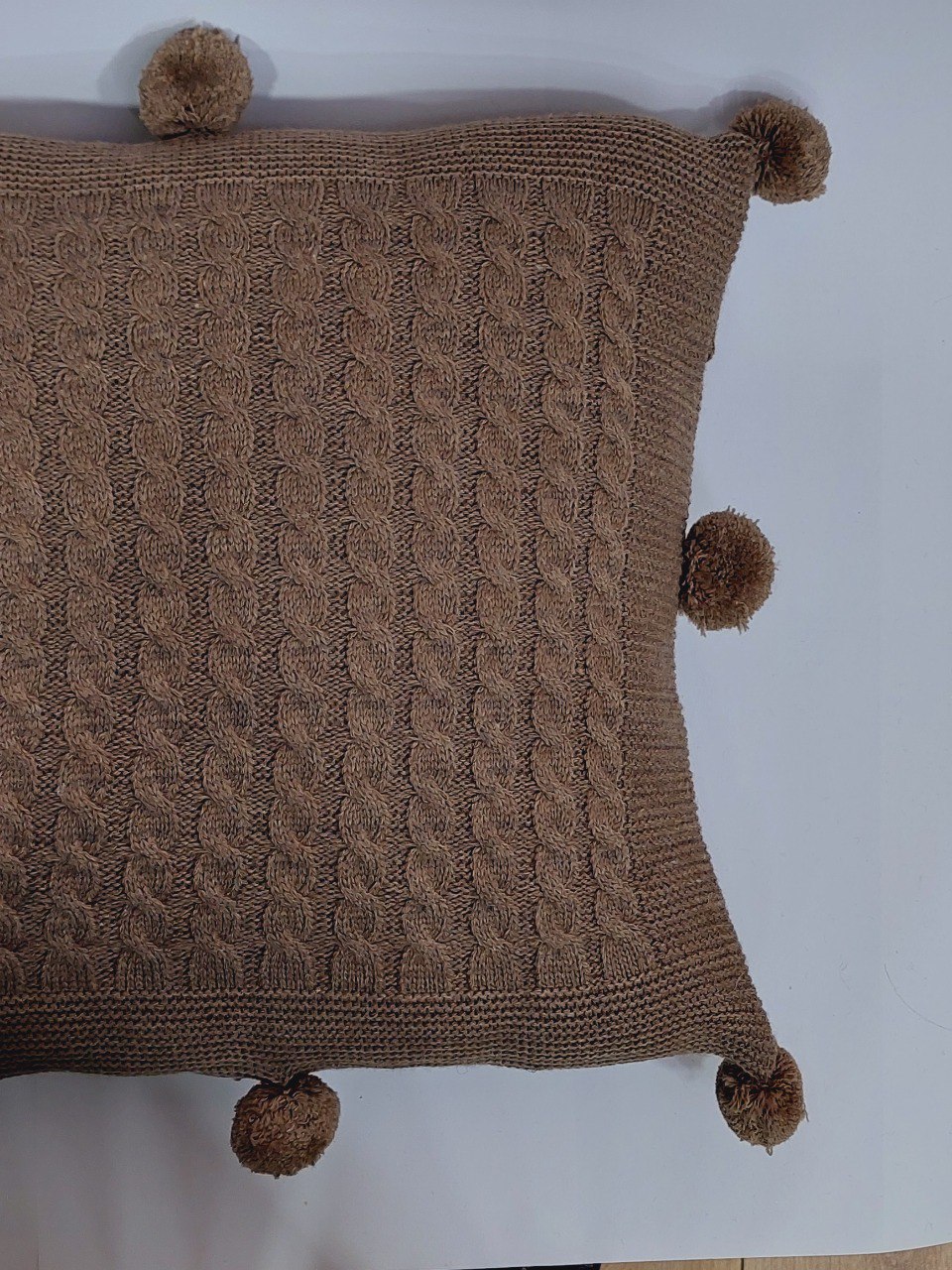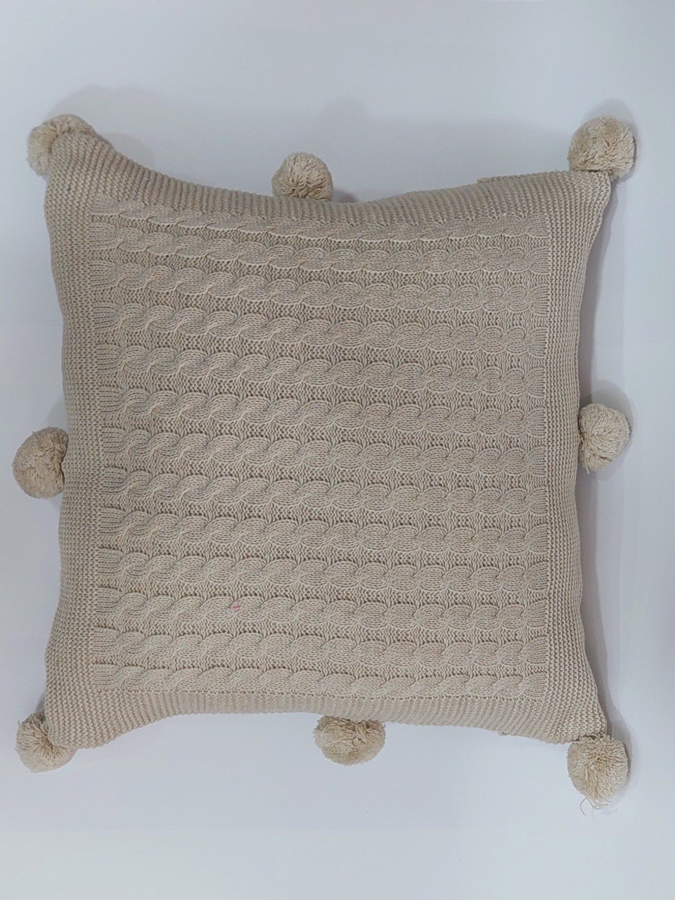 وسادة محبوكة عالية الجودة بتصميم كابل وأربع كرات pompoms في الزوايا، تضيف لمسة عصرية وراحة إلى أي غرفة.