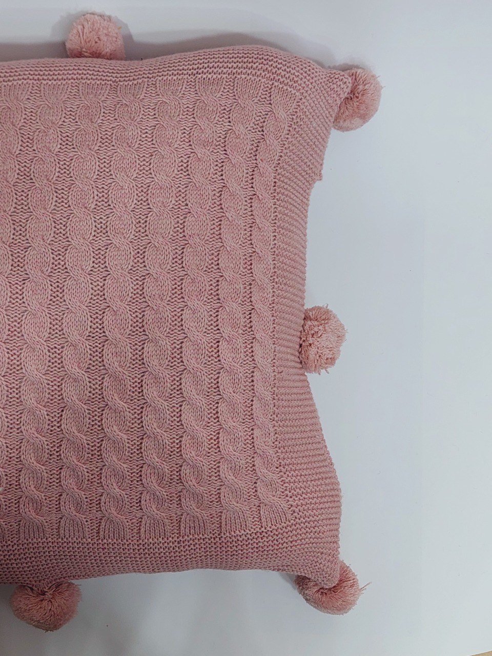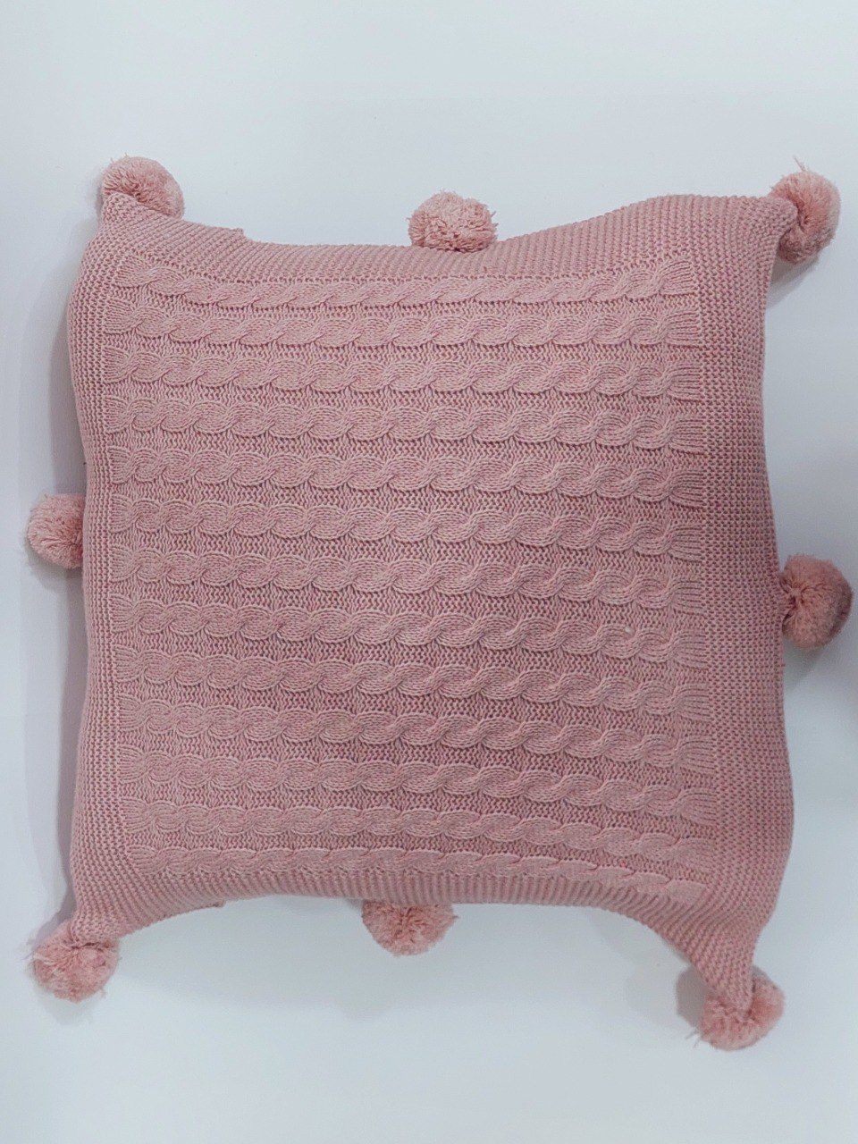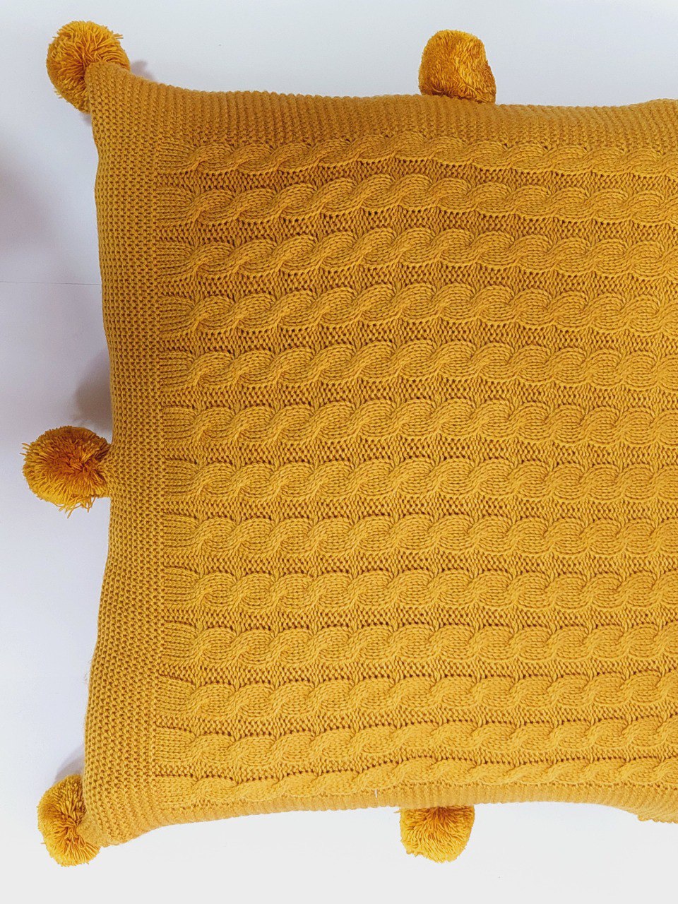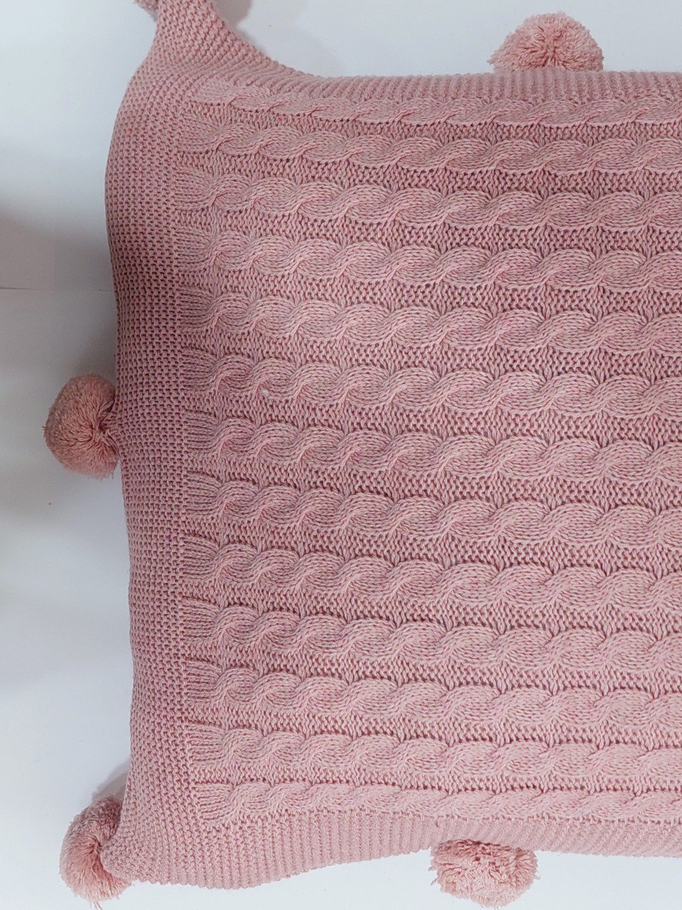 وسادة محبوكة عالية الجودة بتصميم كابل وأربع كرات pompoms في الزوايا، تضيف لمسة عصرية وراحة إلى أي غرفة.