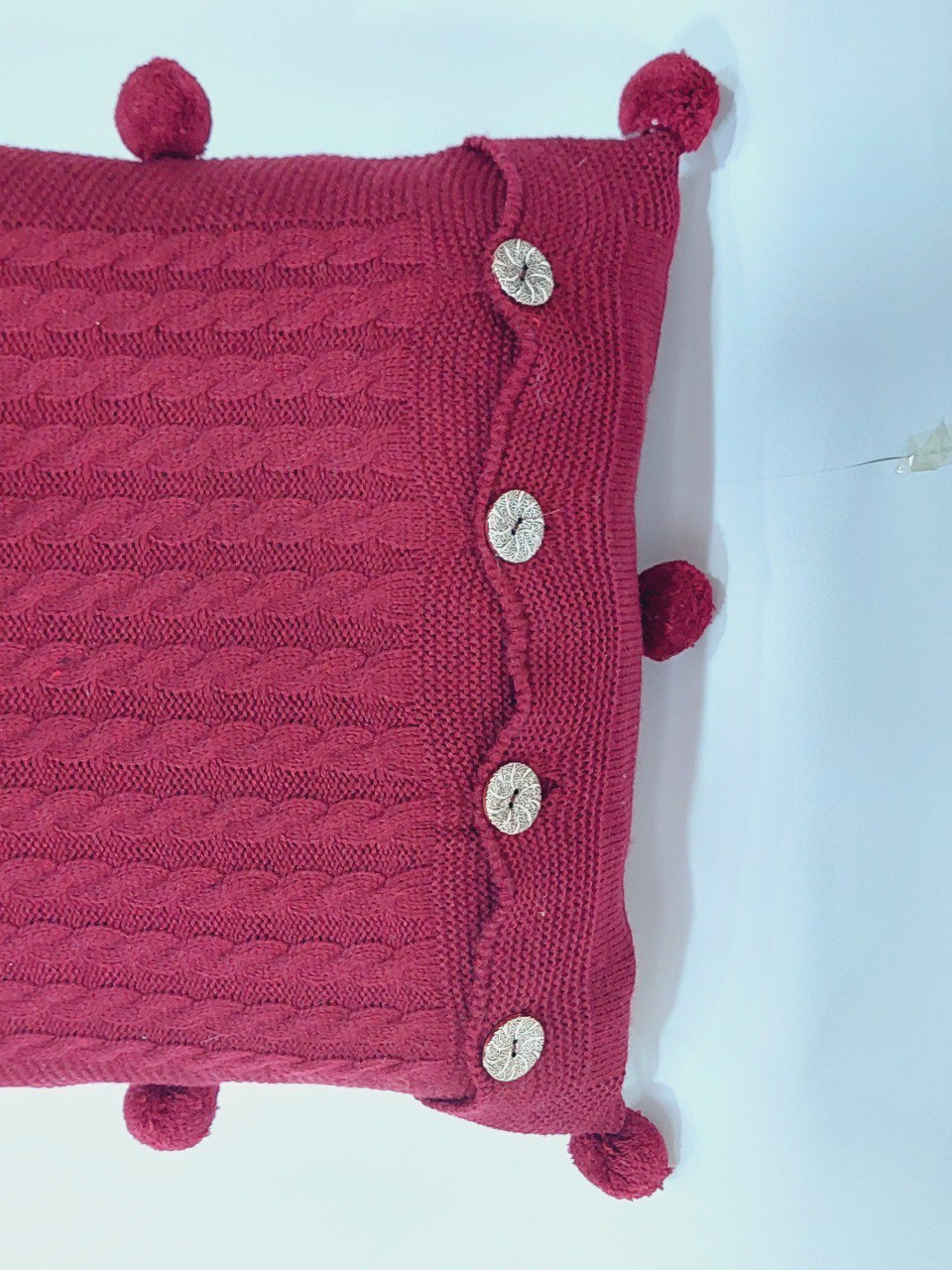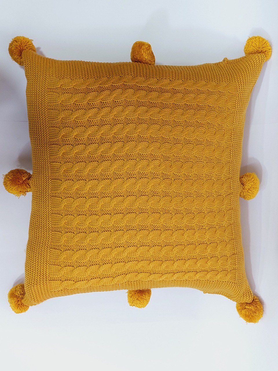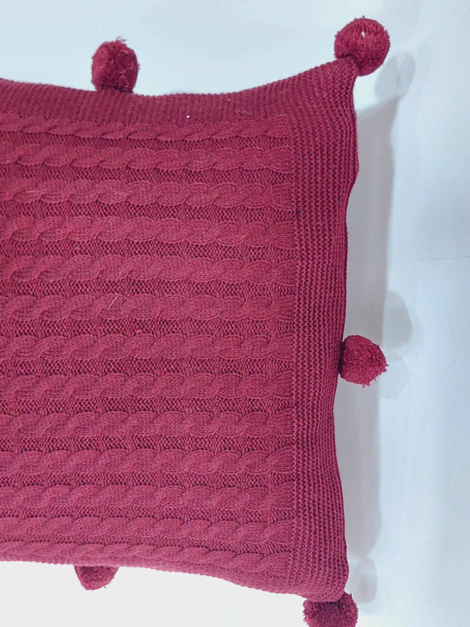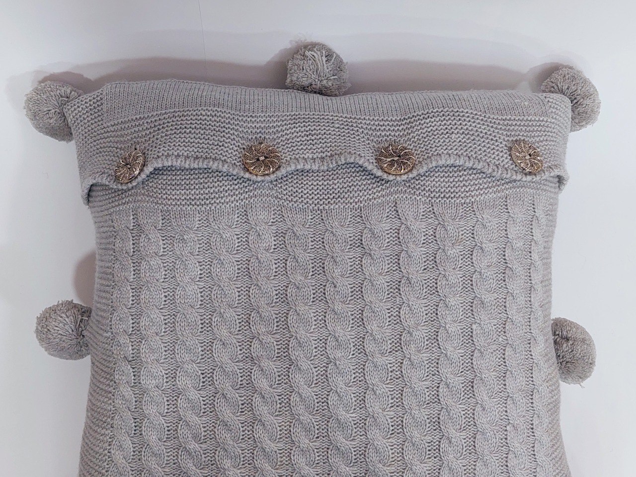 وسادة محبوكة عالية الجودة بتصميم كابل وأربع كرات pompoms في الزوايا، تضيف لمسة عصرية وراحة إلى أي غرفة.