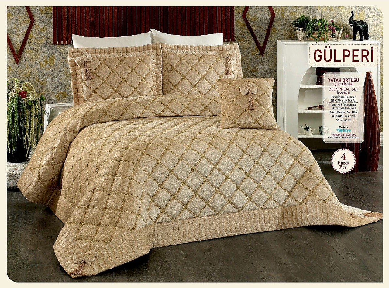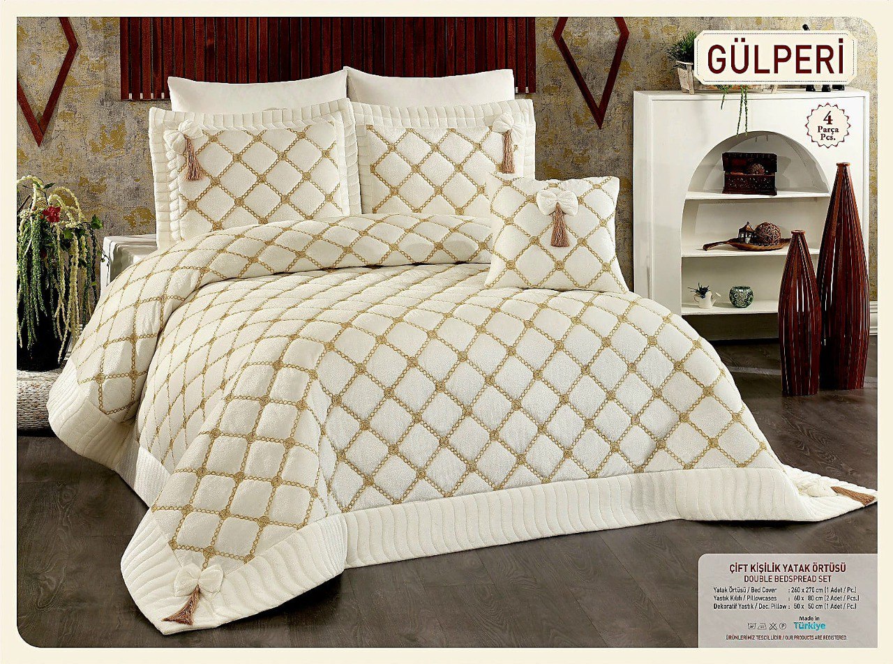 طقم مفرش سرير مزدوج عالي الجودة من القطن من إسطنبول، يتميز بتصميم بيج أنيق مع لمسات شرابة راقية. يضفي هذا الطقم لمسة من الأناقة والفخامة على ديكور غرفة نومك. مصنوع من القطن الناعم والممتاز، مما يضمن تجربة نوم مريحة ومسترخية. يتضمن الطقم 4 قطع: مفرش سرير، 2 غطاء وسادة، ووسادة زينة. مثالي لتعزيز ديكور المنازل والفنادق الفاخرة على حد سواء.