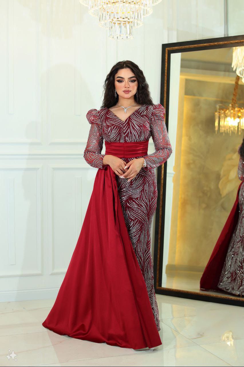 يتميز هذا الفستان المسائي الفاخر بأكمام مزينة بالخرز الفضي الرائع وقصة أنيقة. مصنوع من مواد عالية الجودة، يضمن الراحة والأناقة في أي مناسبة خاصة أو حدث رسمي.