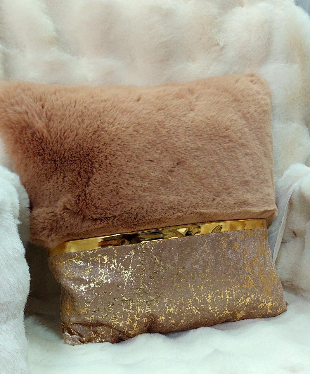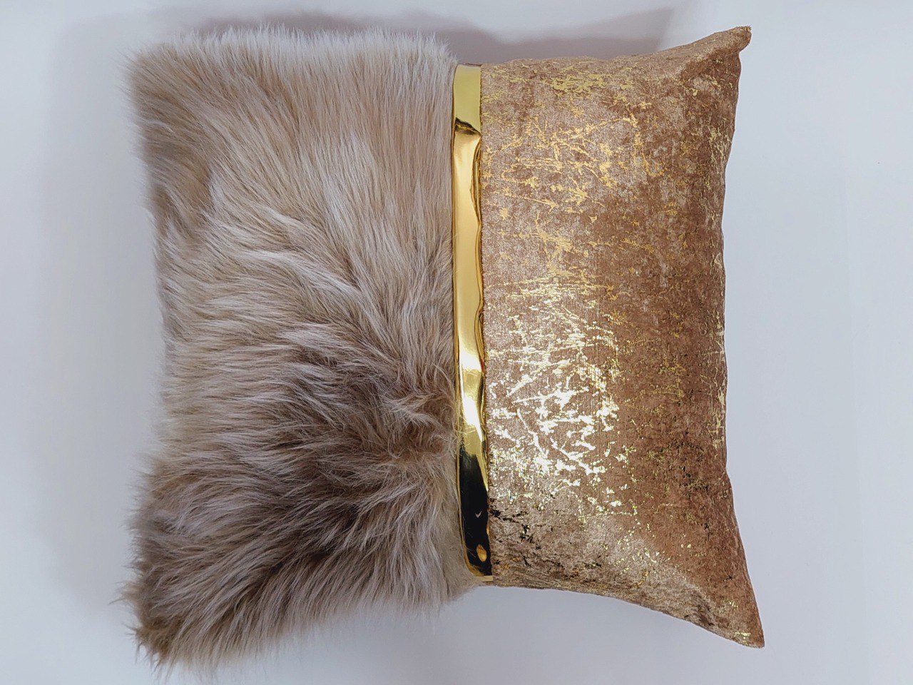 أضف لمسة من الرقي والراحة إلى مساحتك المعيشية مع هذه الوسادة الديكورية الفاخرة من Istanbul Home Decor. تتميز الوسادة بمزيج فريد من الفرو الاصطناعي الناعم من جانب والمخمل الأنيق مع لمسة ذهبية من الجانب الآخر. مثالية لتعزيز ديكور الأريكة أو السرير أو الكرسي، تضيف هذه الوسادة ليس فقط لمسة من الأناقة ولكن أيضًا تجربة ناعمة ومريحة. مثالية للديكورات العصرية والكلاسيكية على حد سواء.