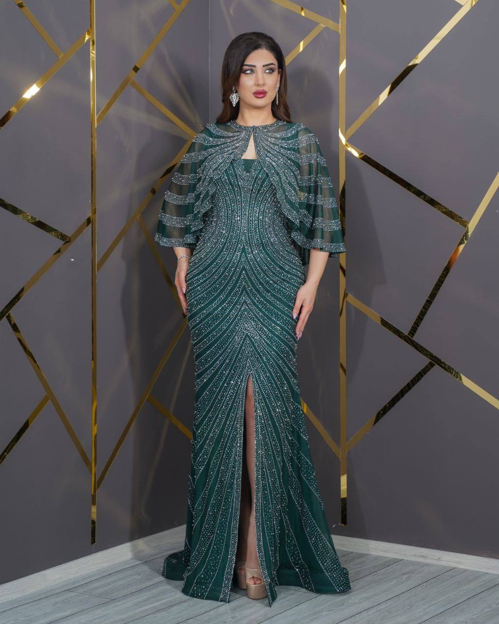 • الوصف: فستان سهرة فاخر مزين بالحجارة اللامعة، يتميز بتصميم أنيق وفاخر. مصنوع من أقمشة عالية الجودة، مثالي للمناسبات الخاصة والحفلات