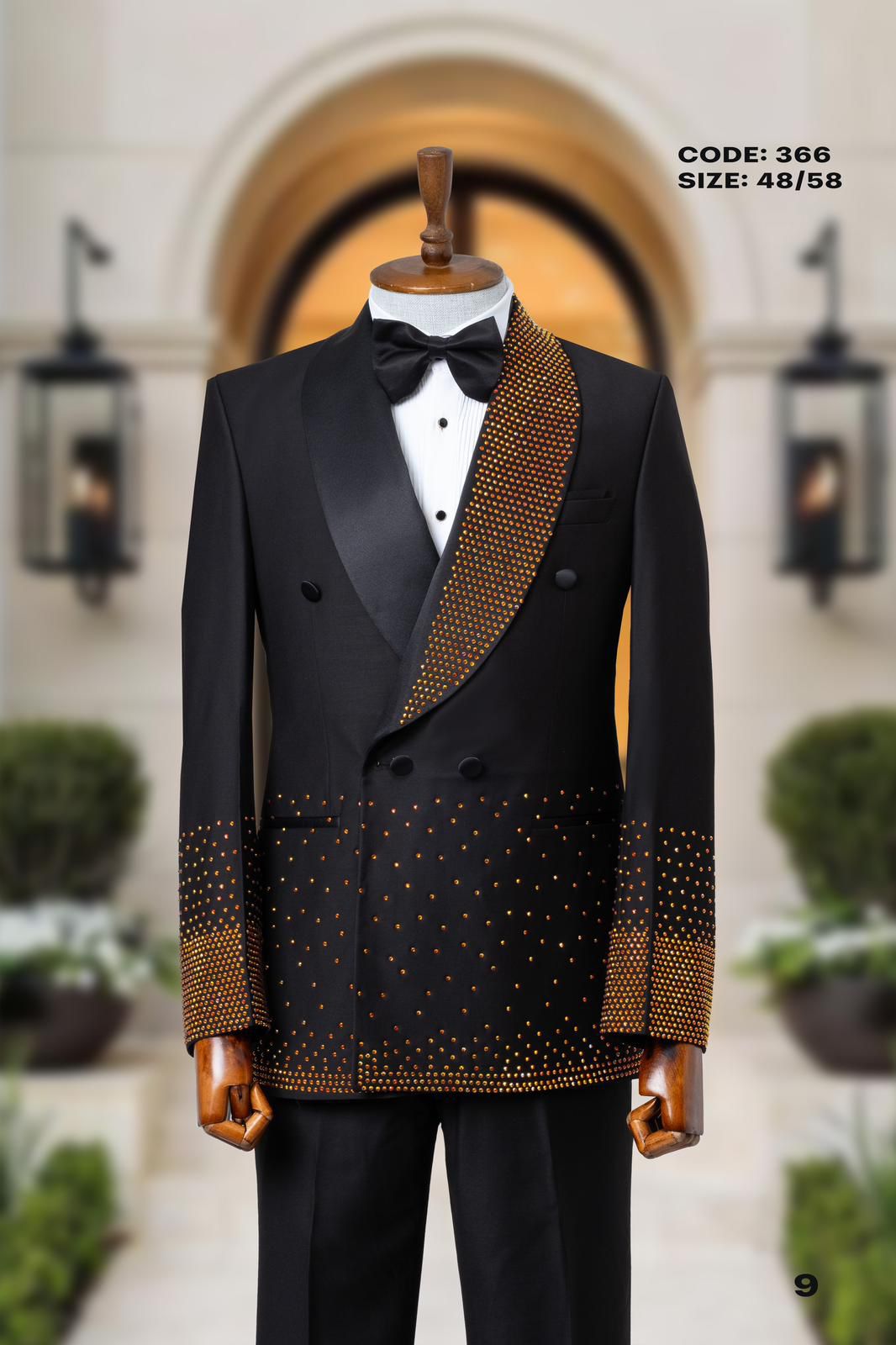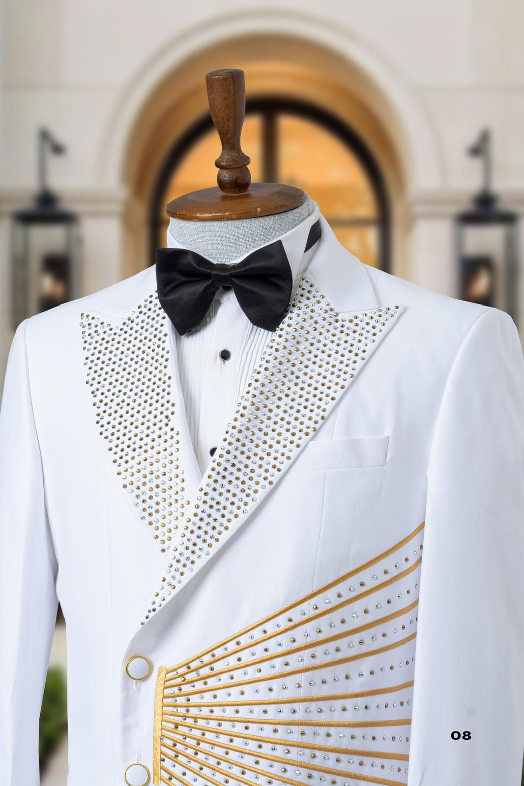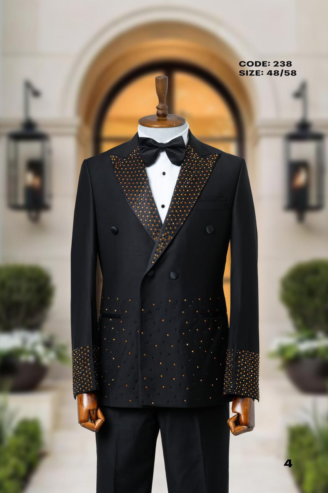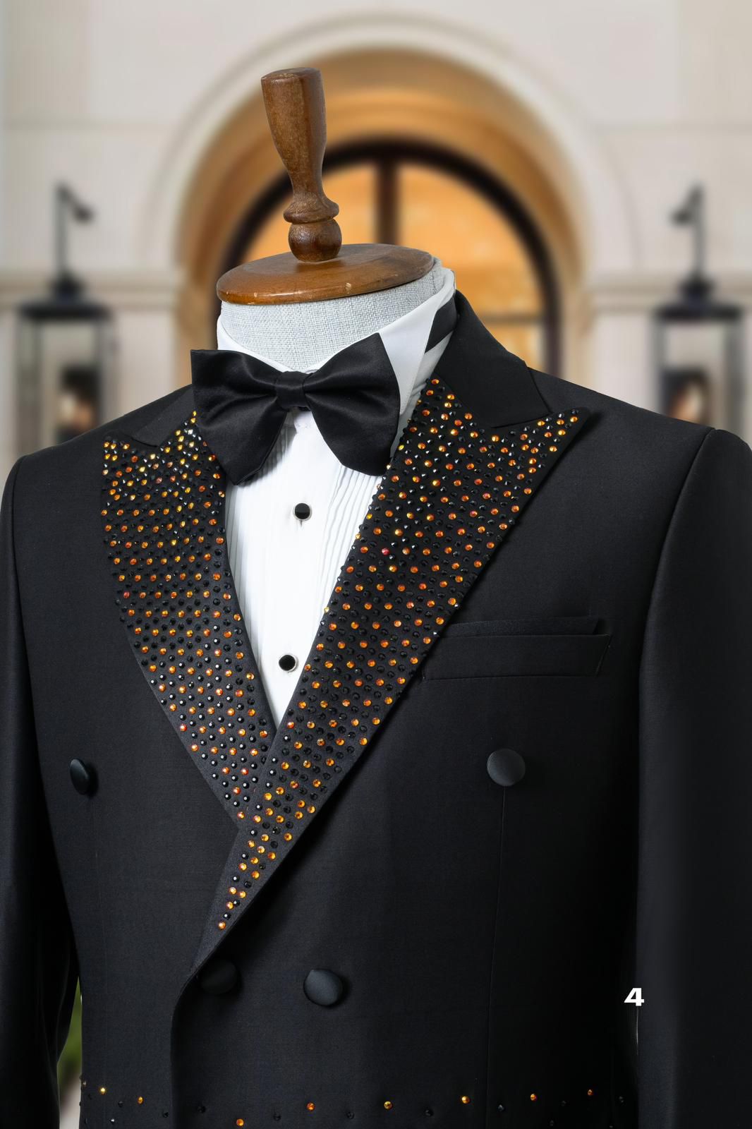 بدلة رجال فاخرة مزينة بأحجار كريستالية، مثالية للفعاليات الرسمية وحفلات الزفاف.