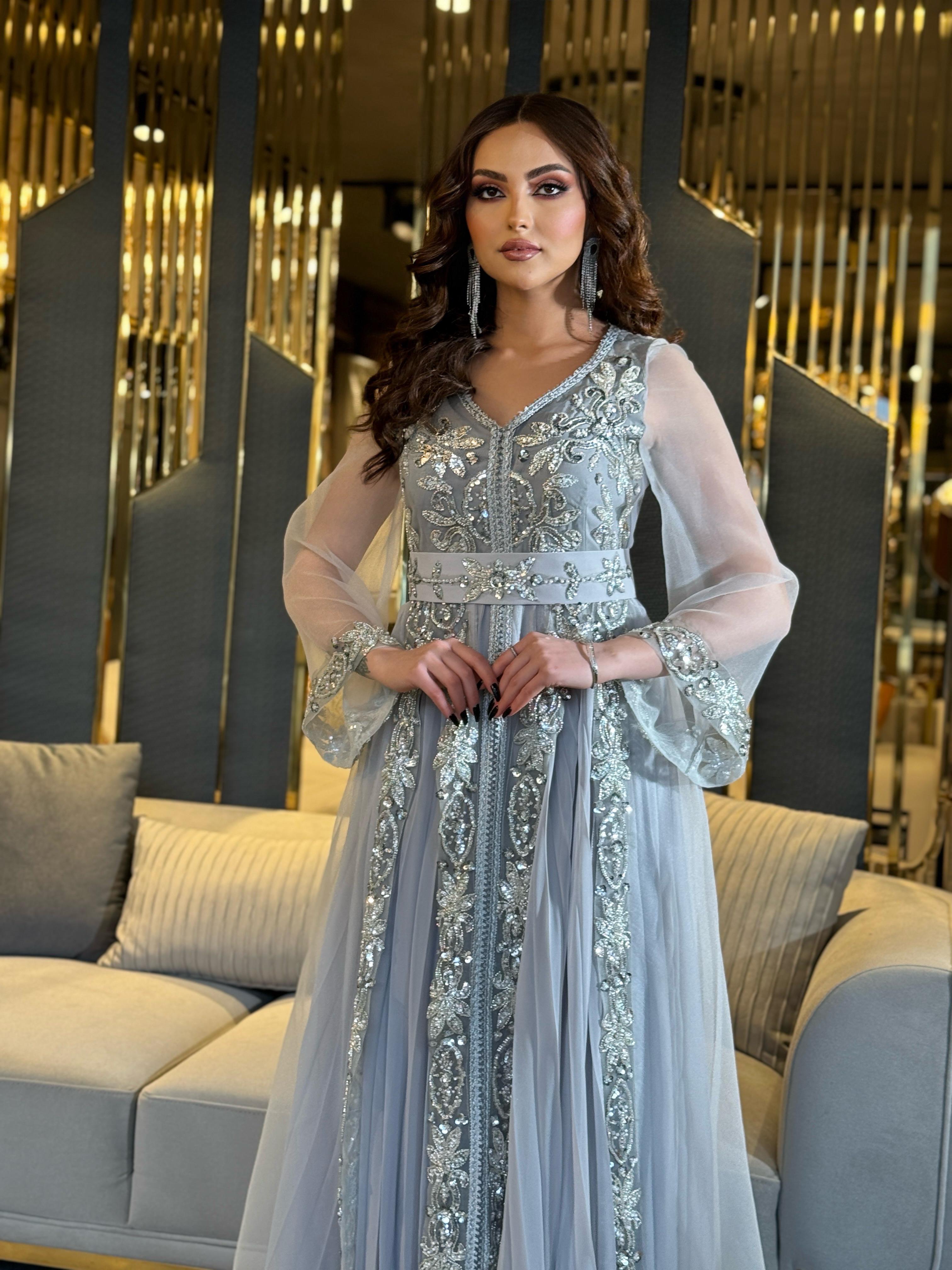 فستان فاخر مزين بالتطريز المعقد. مثالي للأحداث الأنيقة، فهو يضيف لمسة متطورة ومبهرة.