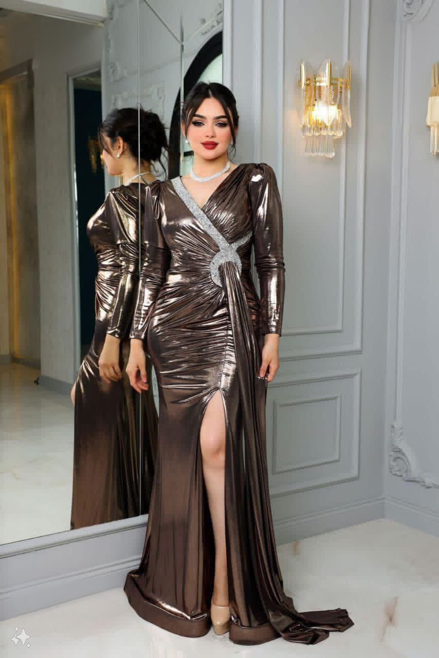 هذا الفستان المسائي اللامع يتميز بتفاصيل فضية أنيقة وتصميم دافئ ومتطور. مصنوع من مواد فاخرة، يضمن ملاءمة مثالية ومظهراً مذهلاً لأي مناسبة رسمية أو خاصة