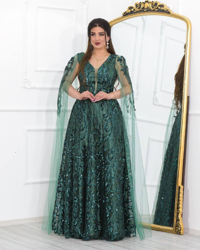فستان سهرة لامع مزين بتفاصيل مطرزة، مثالي للمناسبات الخاصة والاحتفالات. مصنوع من مواد عالية الجودة لضمان الراحة والأناقة