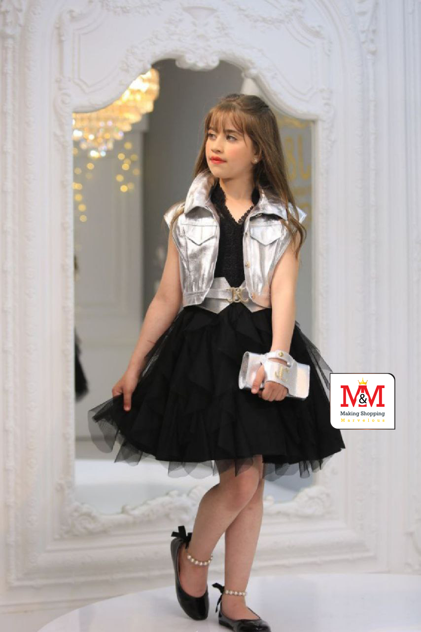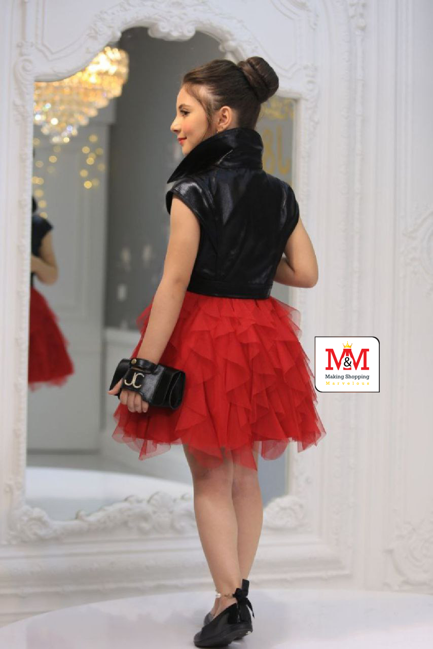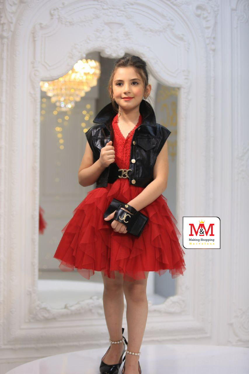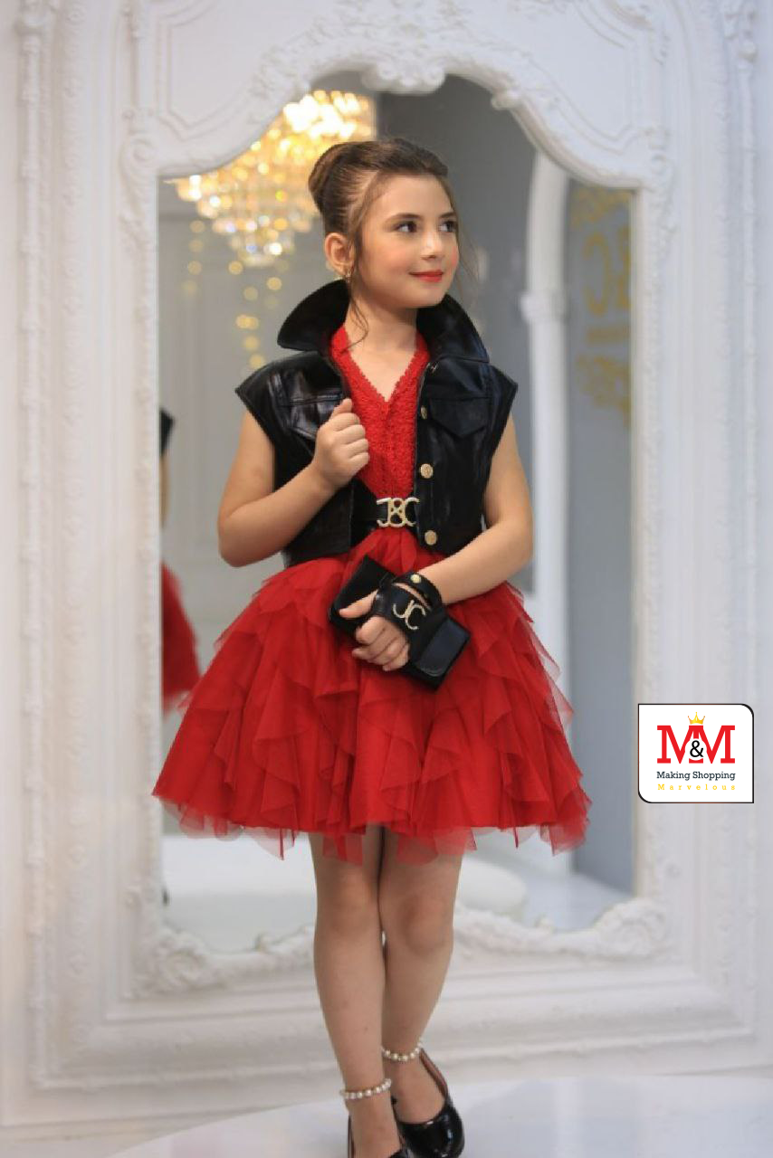هذا الفستان الأحمر الأنيق مع سترة سوداء مثالي للحصول على مظهر عصري لطفلك. يتميز الفستان بتنورة تulle متعددة الطبقات وتصميم بدون أكمام، بينما تضيف السترة السوداء لمسة من الجرأة. مصمم من مواد عالية الجودة لضمان الراحة والأناقة لطفلك