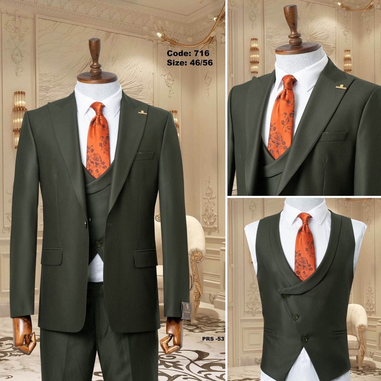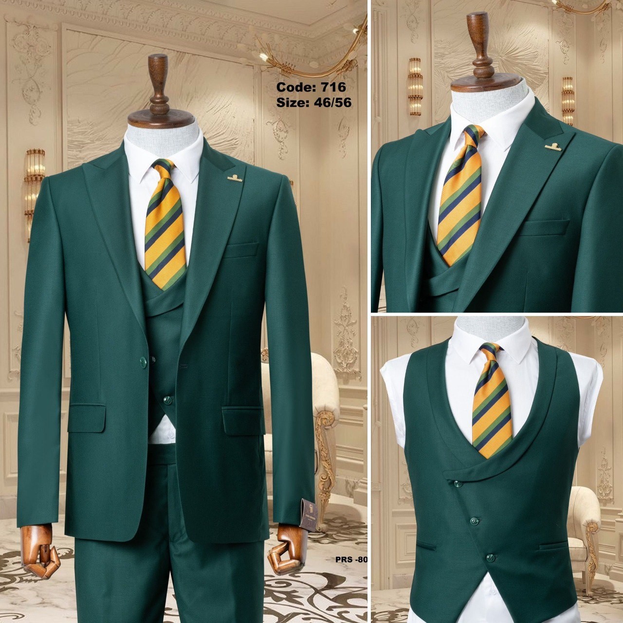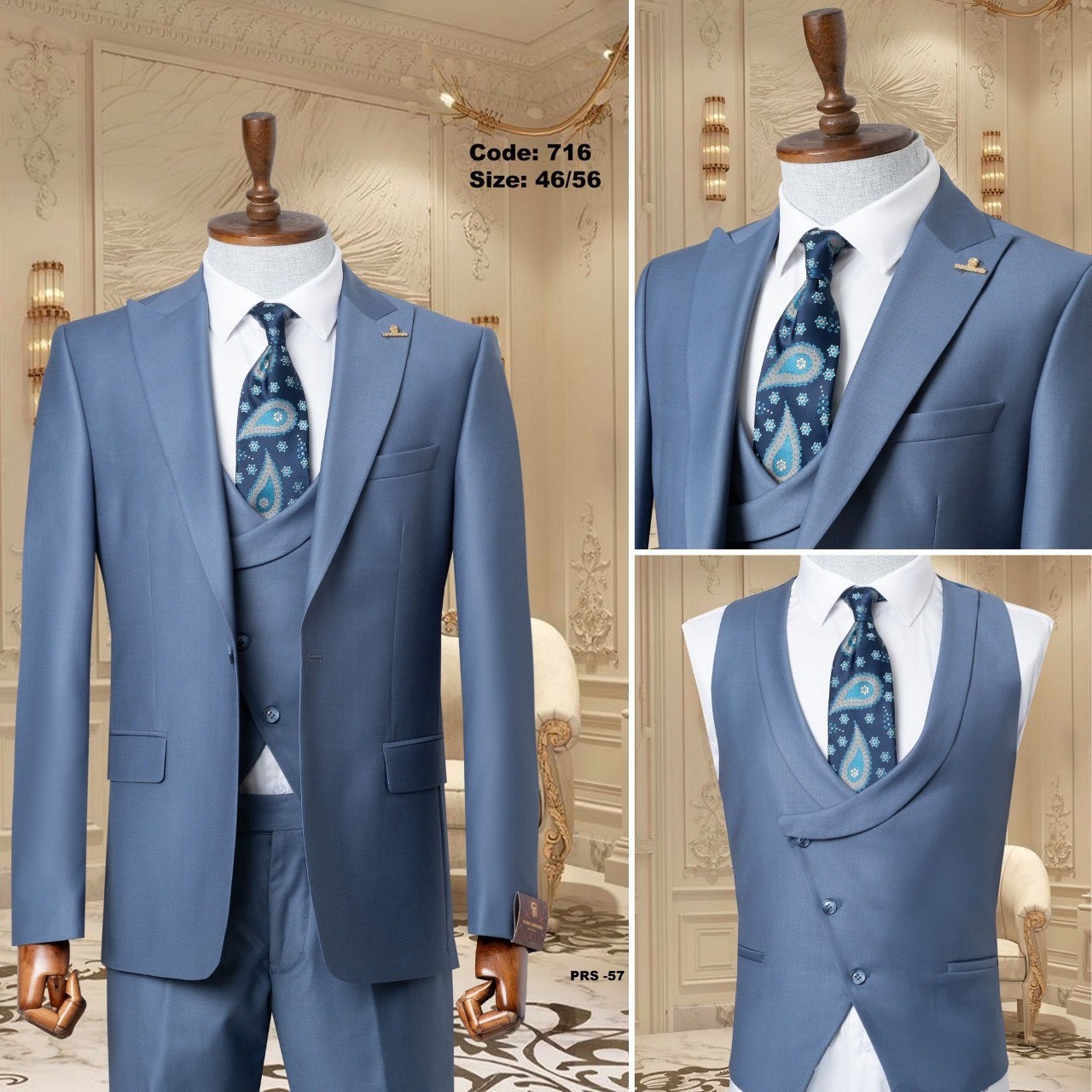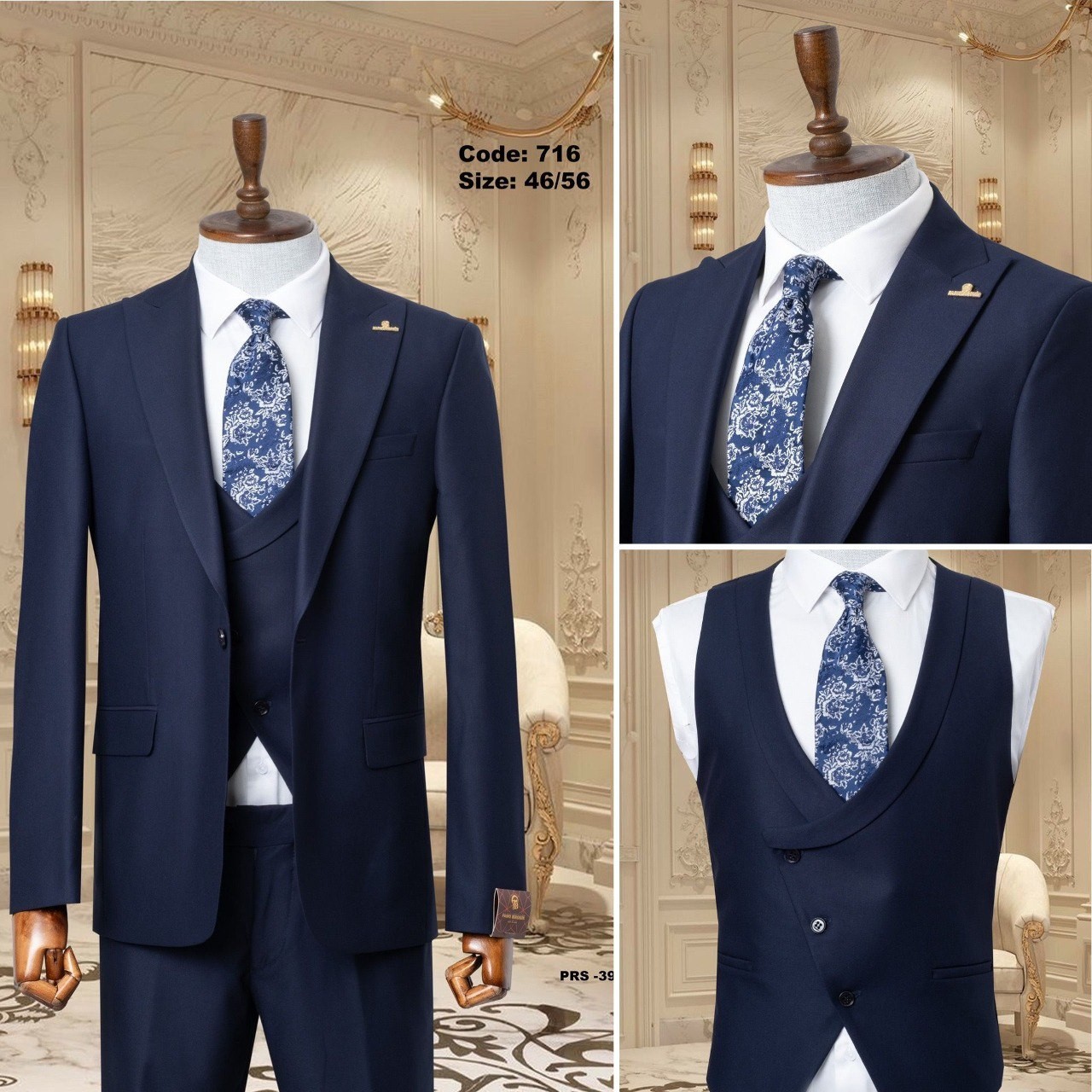 بدلة رسمية مميزة، تشمل سترة وسروال وقميص داخلي، مثالية للمناسبات الرسمية وحفلات الزفاف. تتميز بتصميم أنيق وجذاب.