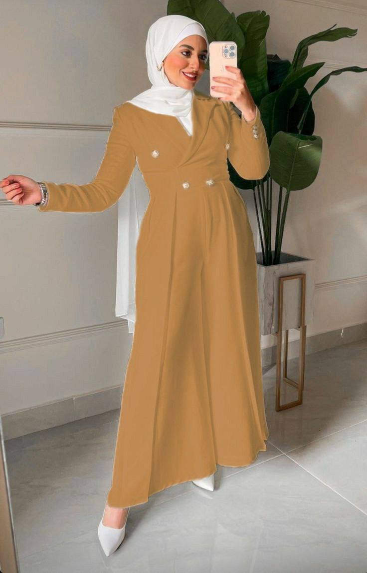 بدلة نسائية أنيقة ومريحة، مصممة لجميع المناسبات الرسمية. تتميز بأكمام طويلة وزرين في المقدمة لمظهر كلاسيكي